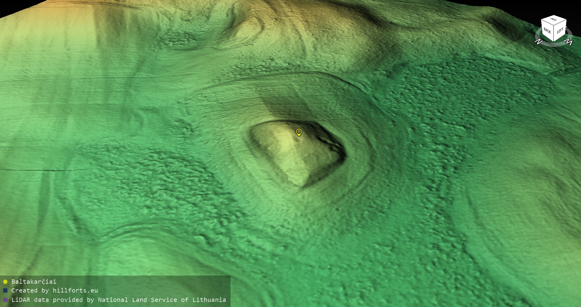 Latvijas pilskalnu 3D modeļi, kas veidoti no brīvpieejas LIDAR datiem LĢIA vietnē.