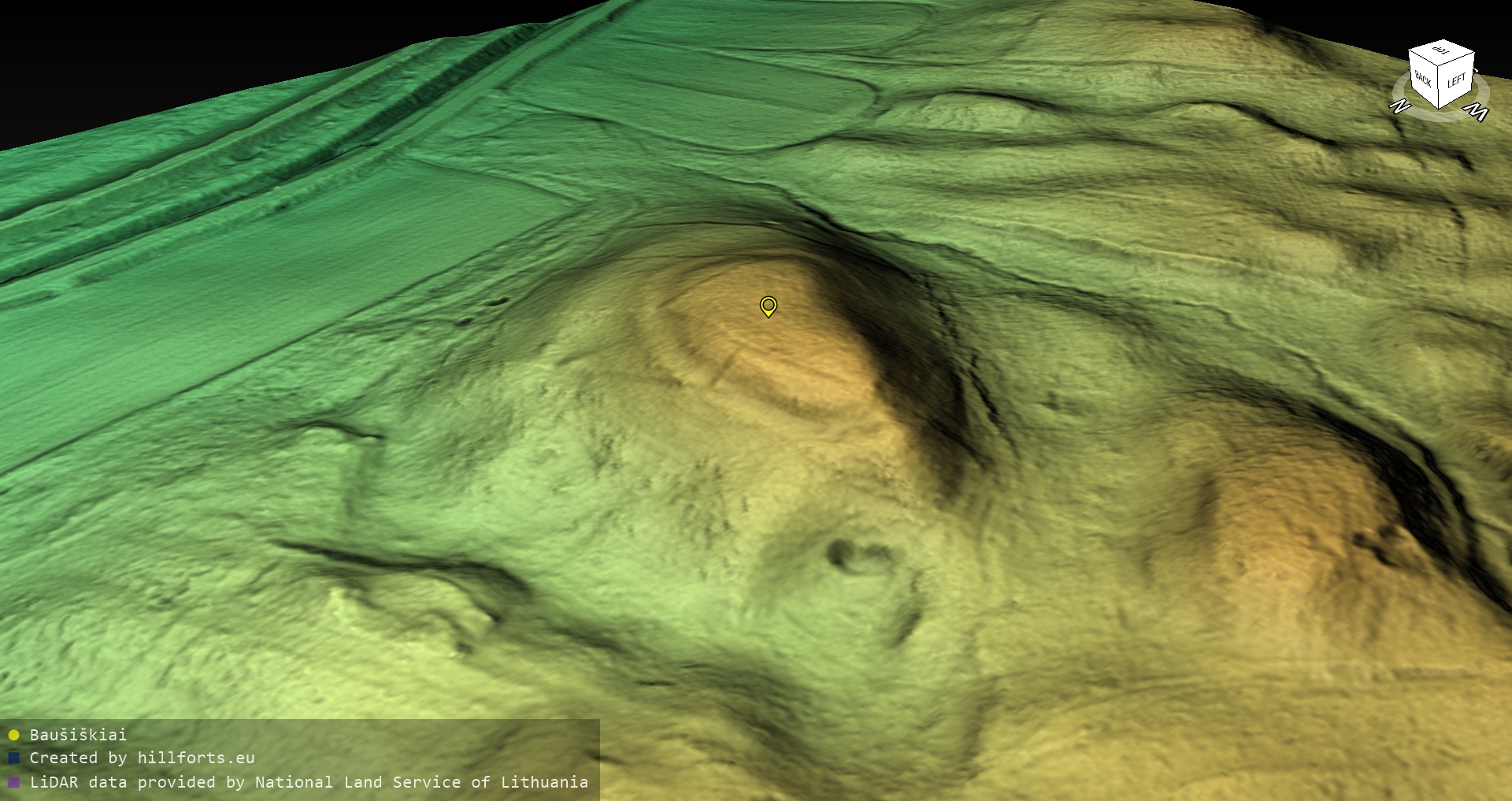 Latvijas pilskalnu 3D modeļi, kas veidoti no brīvpieejas LIDAR datiem LĢIA vietnē.