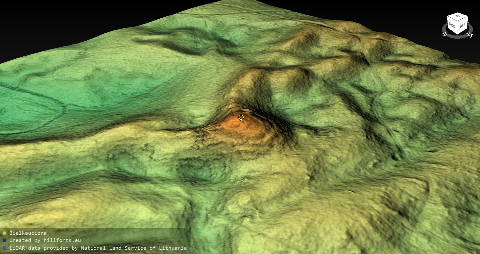 Latvijas pilskalnu 3D modeļi, kas veidoti no brīvpieejas LIDAR datiem LĢIA vietnē.