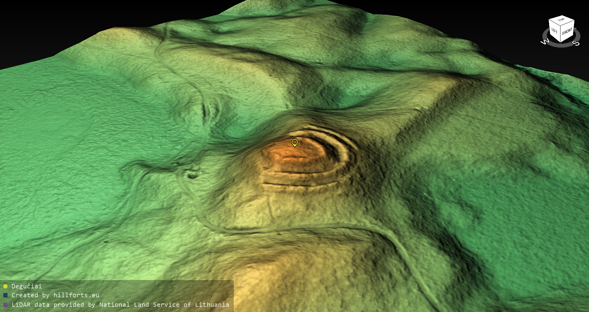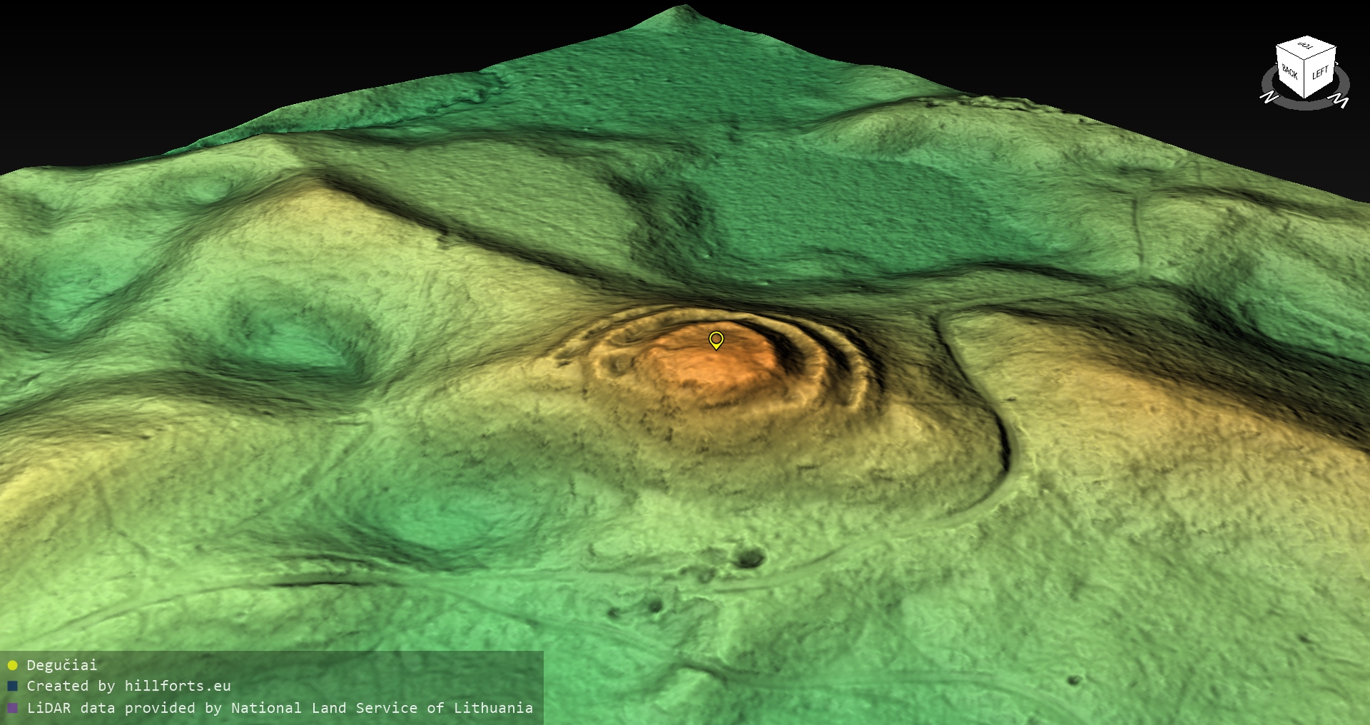 Latvijas pilskalnu 3D modeļi, kas veidoti no brīvpieejas LIDAR datiem LĢIA vietnē.