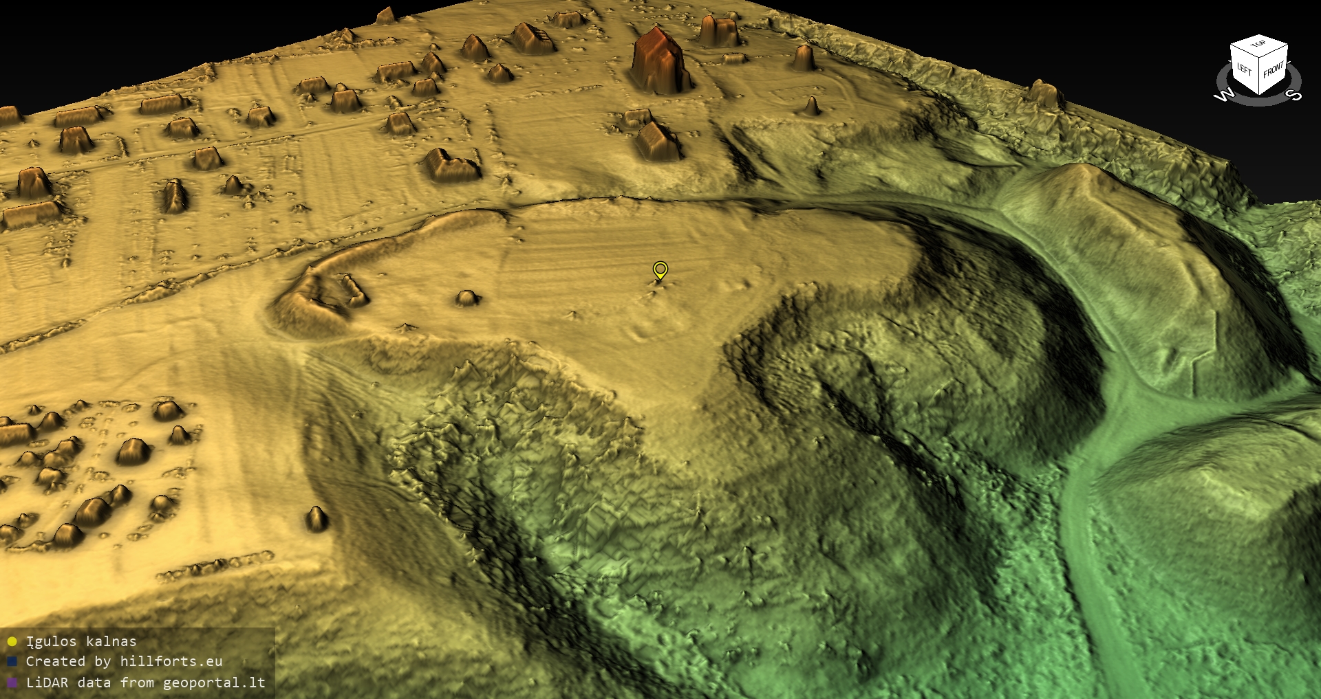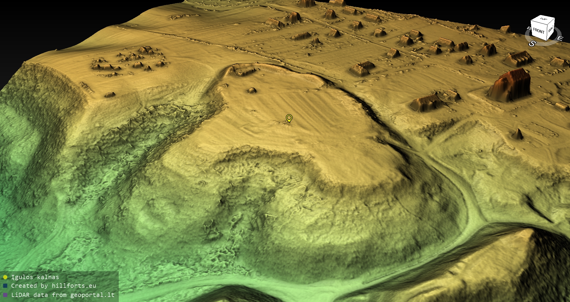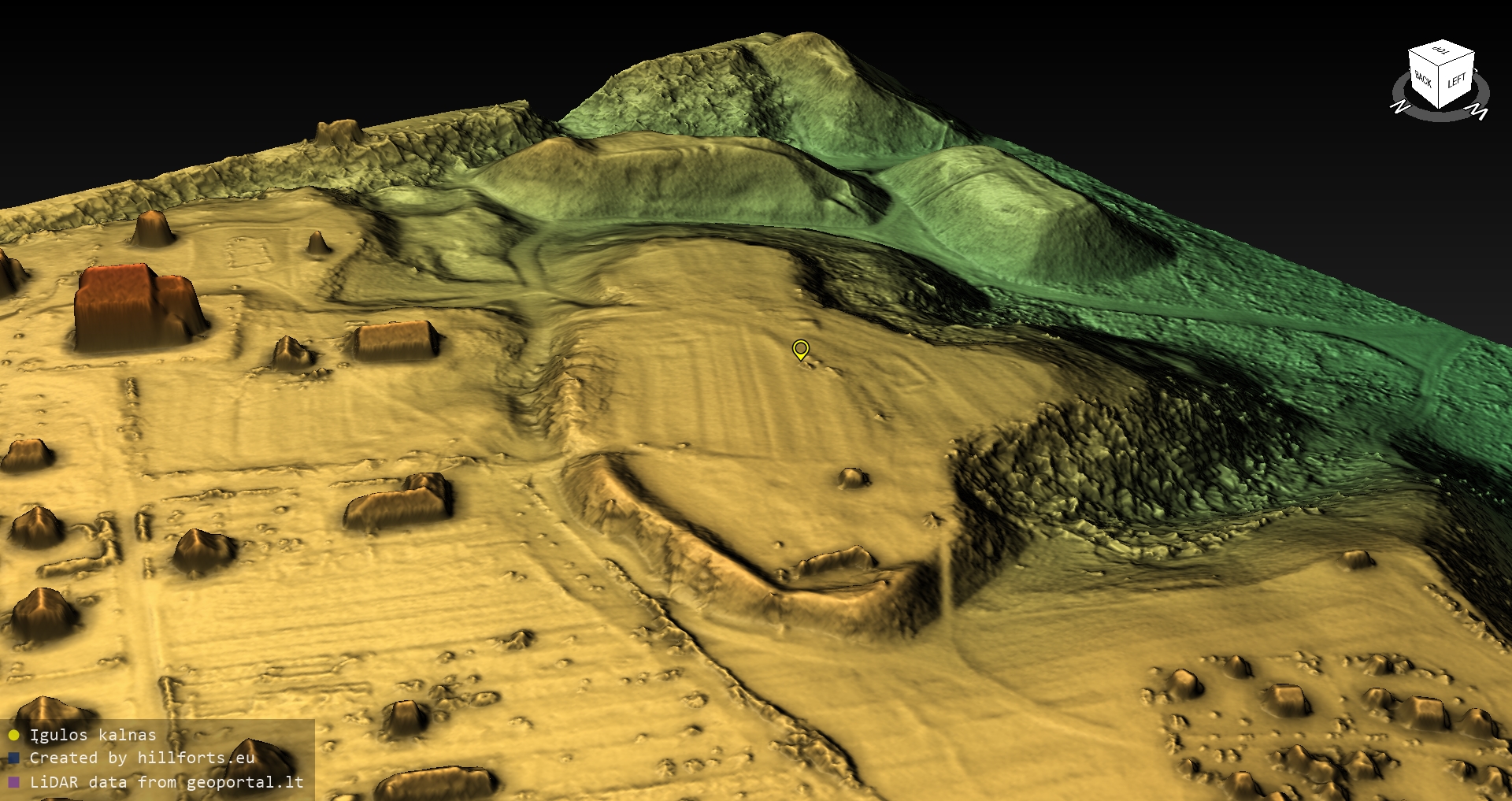 Latvijas pilskalnu 3D modeļi, kas veidoti no brīvpieejas LIDAR datiem LĢIA vietnē.