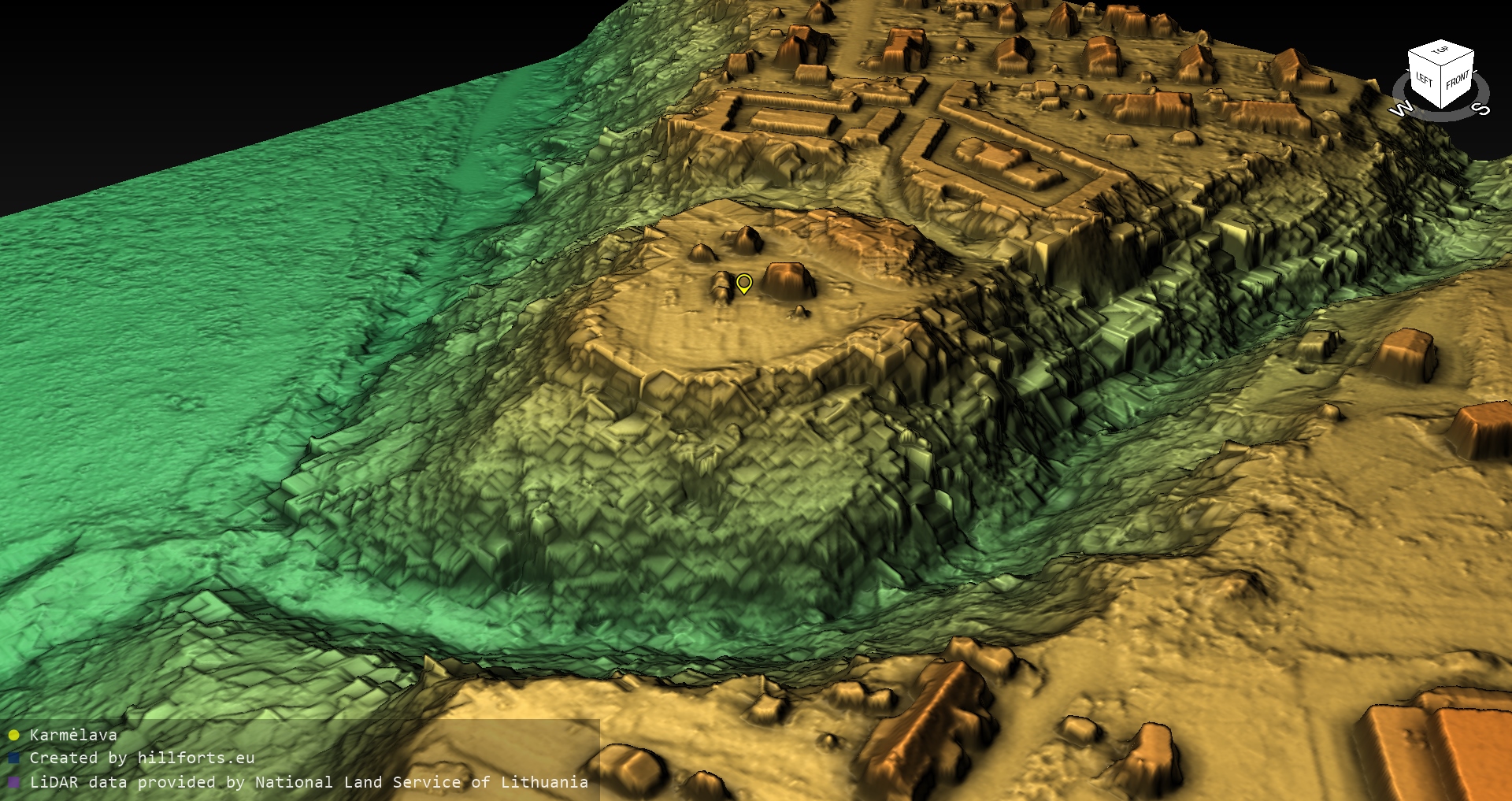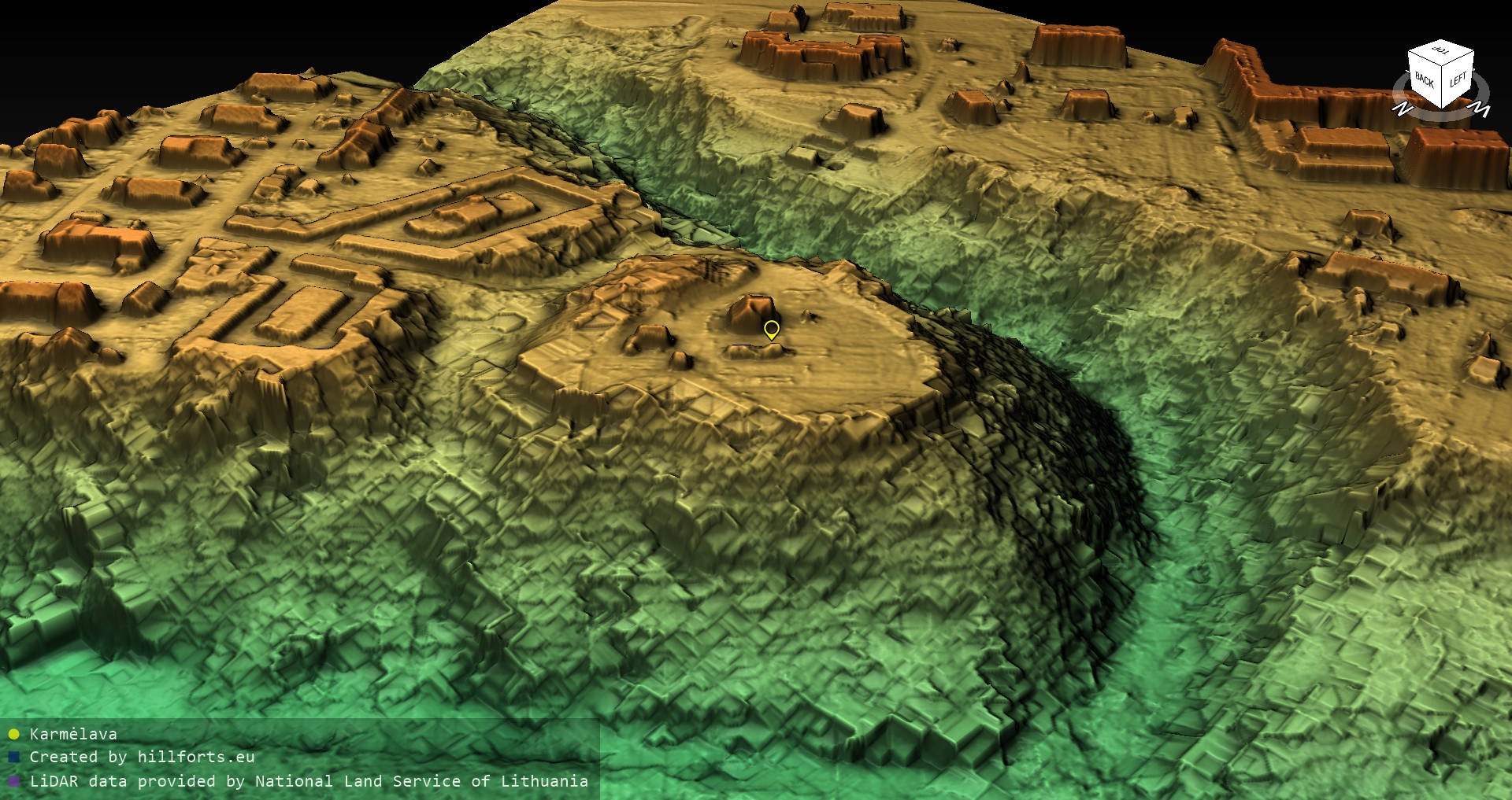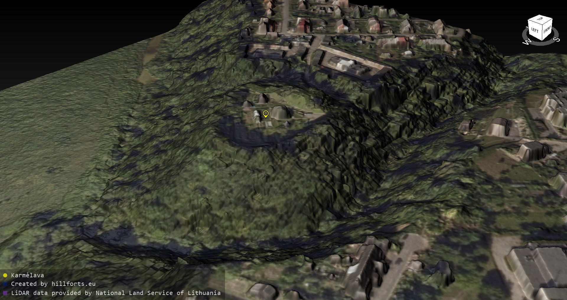 Latvijas pilskalnu 3D modeļi, kas veidoti no brīvpieejas LIDAR datiem LĢIA vietnē.