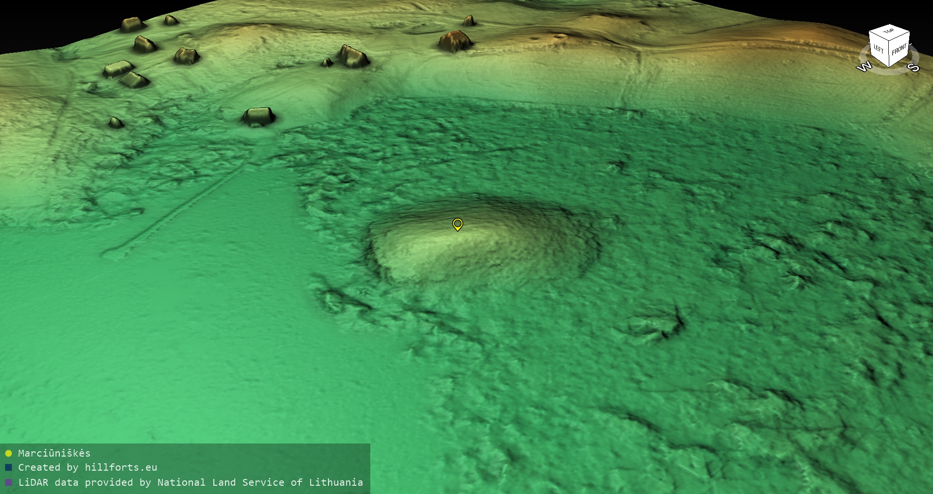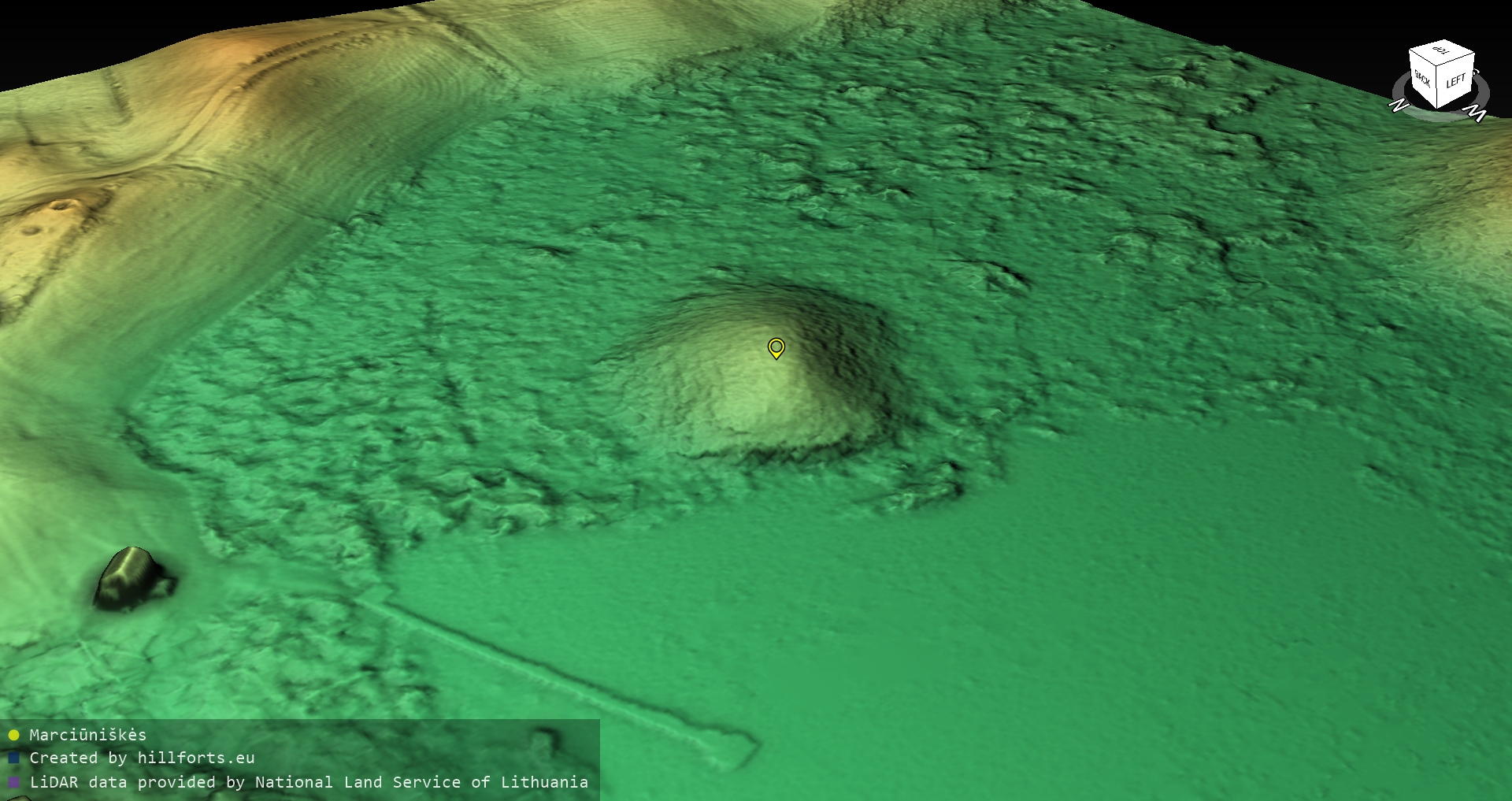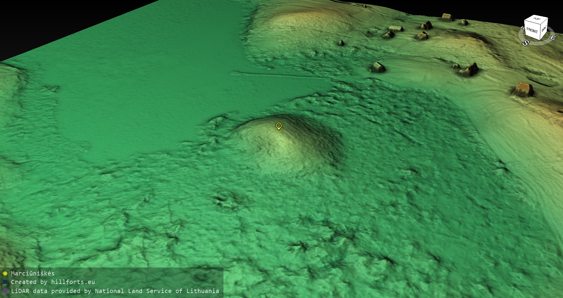 Latvijas pilskalnu 3D modeļi, kas veidoti no brīvpieejas LIDAR datiem LĢIA vietnē.