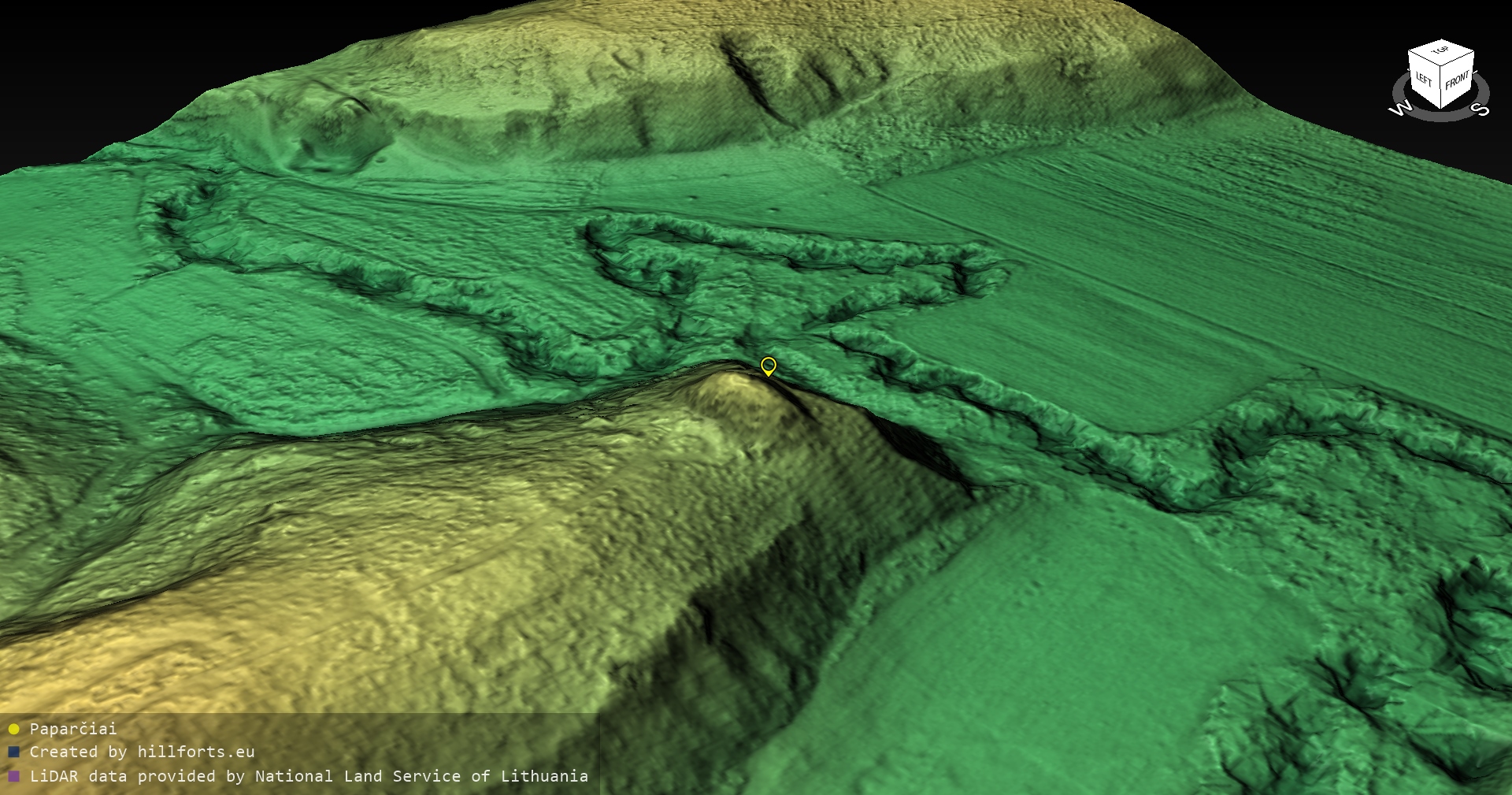 Latvijas pilskalnu 3D modeļi, kas veidoti no brīvpieejas LIDAR datiem LĢIA vietnē.