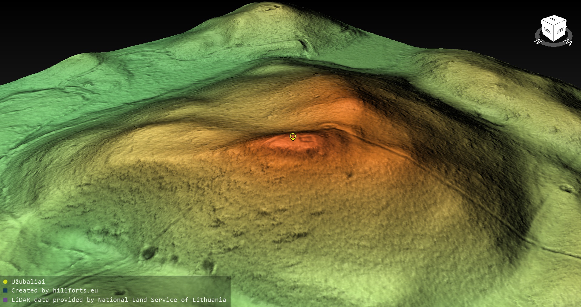 Latvijas pilskalnu 3D modeļi, kas veidoti no brīvpieejas LIDAR datiem LĢIA vietnē.