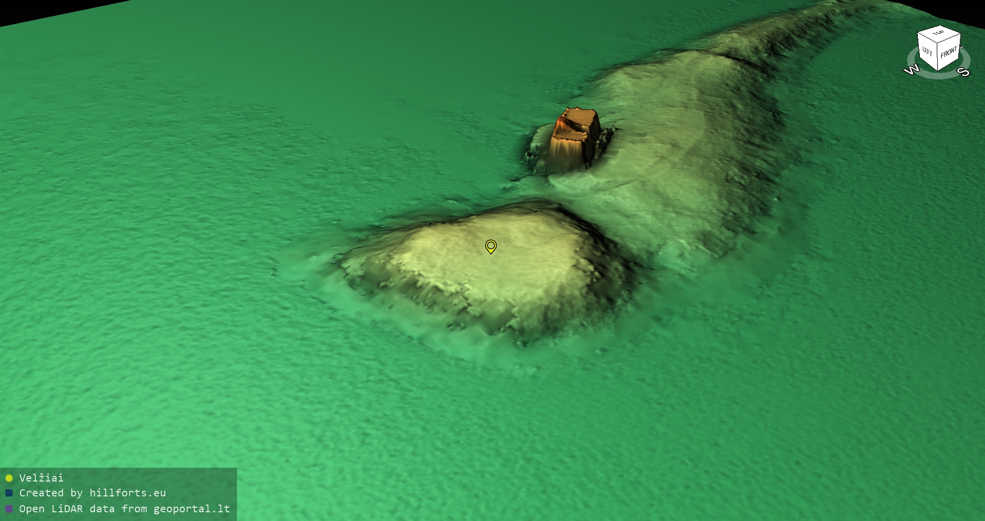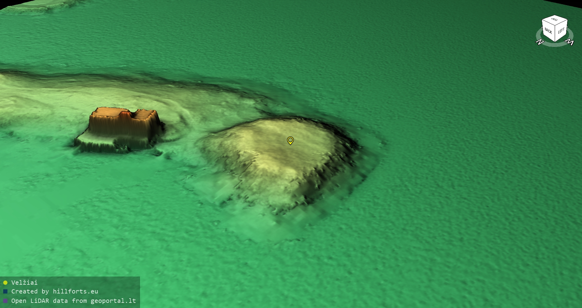 Latvijas pilskalnu 3D modeļi, kas veidoti no brīvpieejas LIDAR datiem LĢIA vietnē.