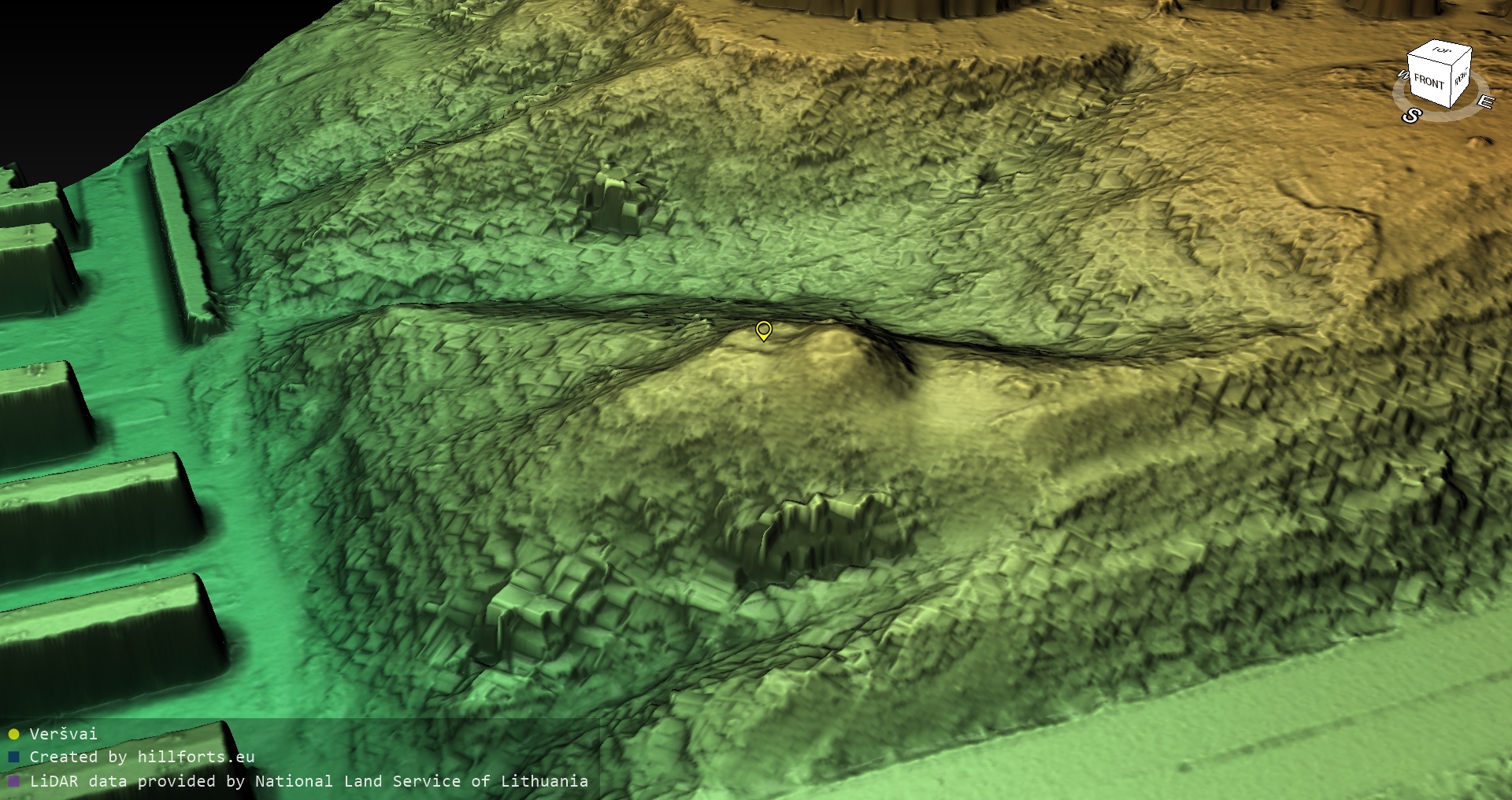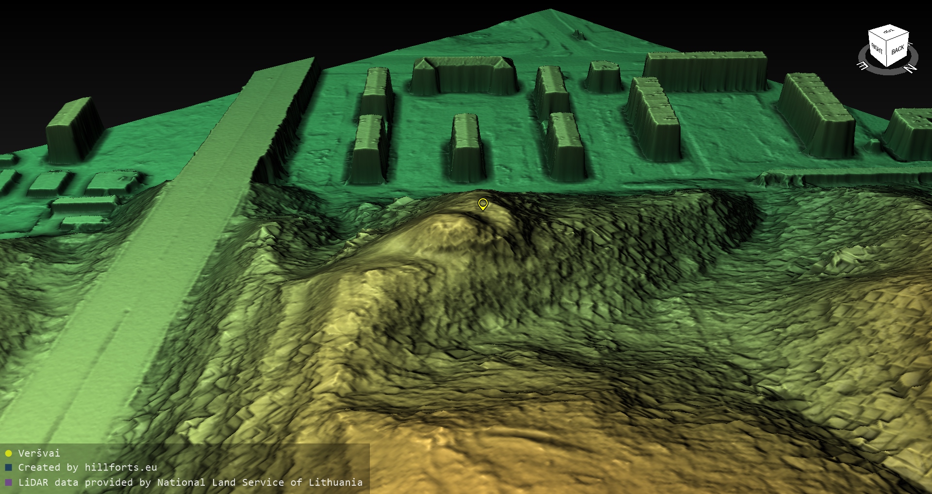 Latvijas pilskalnu 3D modeļi, kas veidoti no brīvpieejas LIDAR datiem LĢIA vietnē.