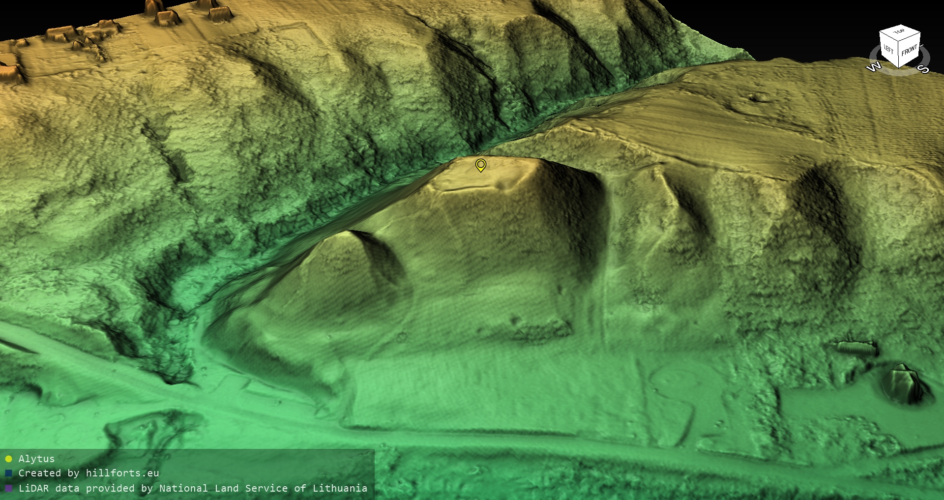 Latvijas pilskalnu 3D modeļi, kas veidoti no brīvpieejas LIDAR datiem LĢIA vietnē.