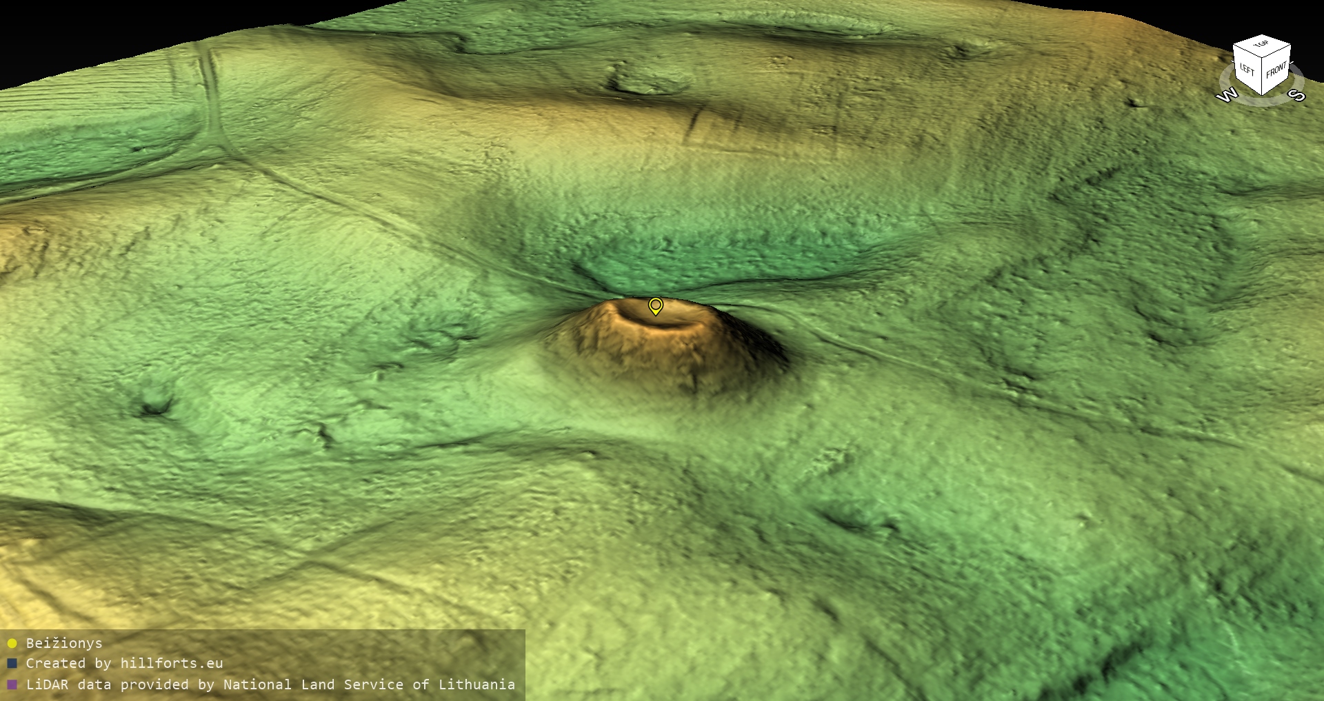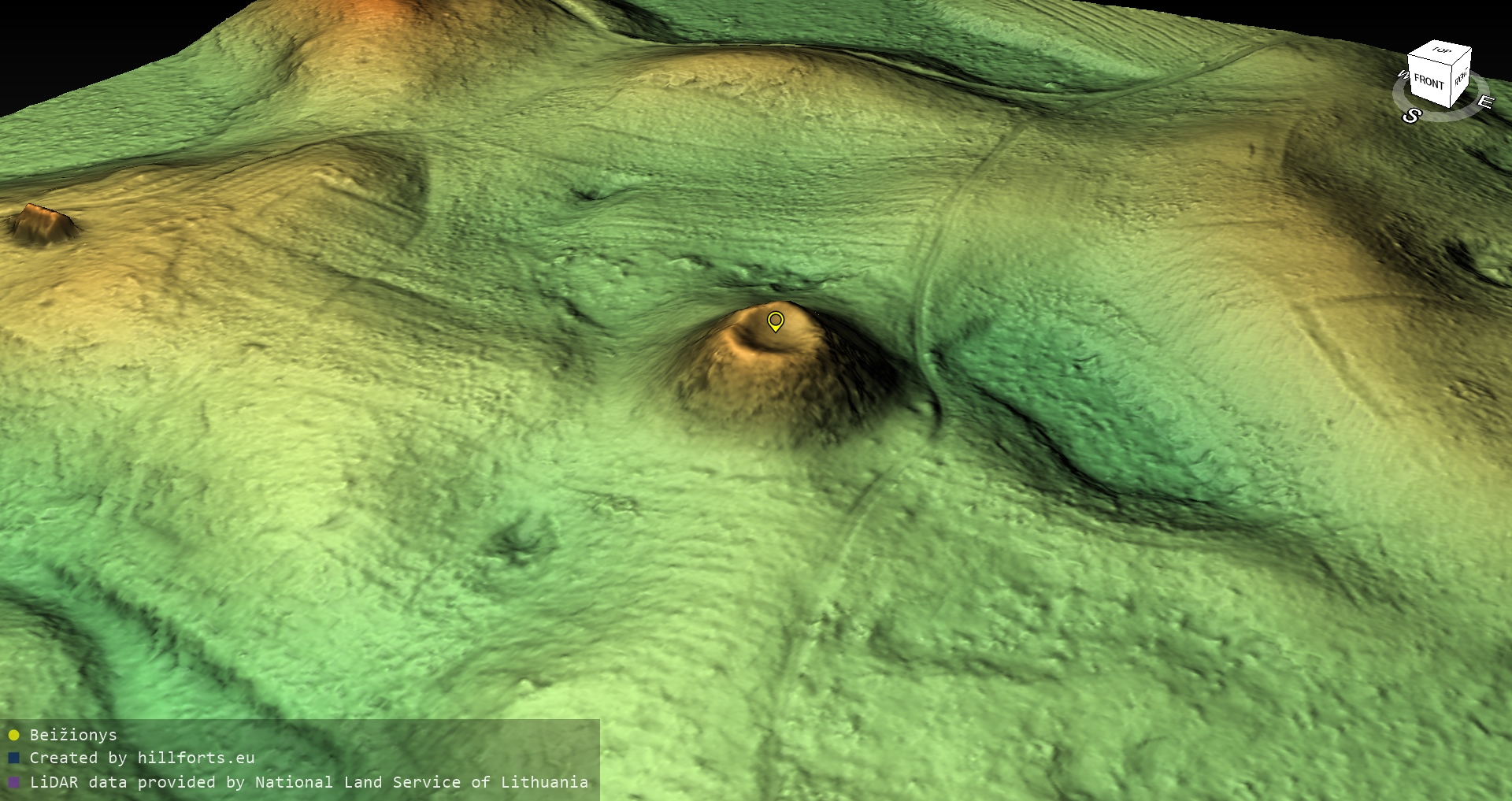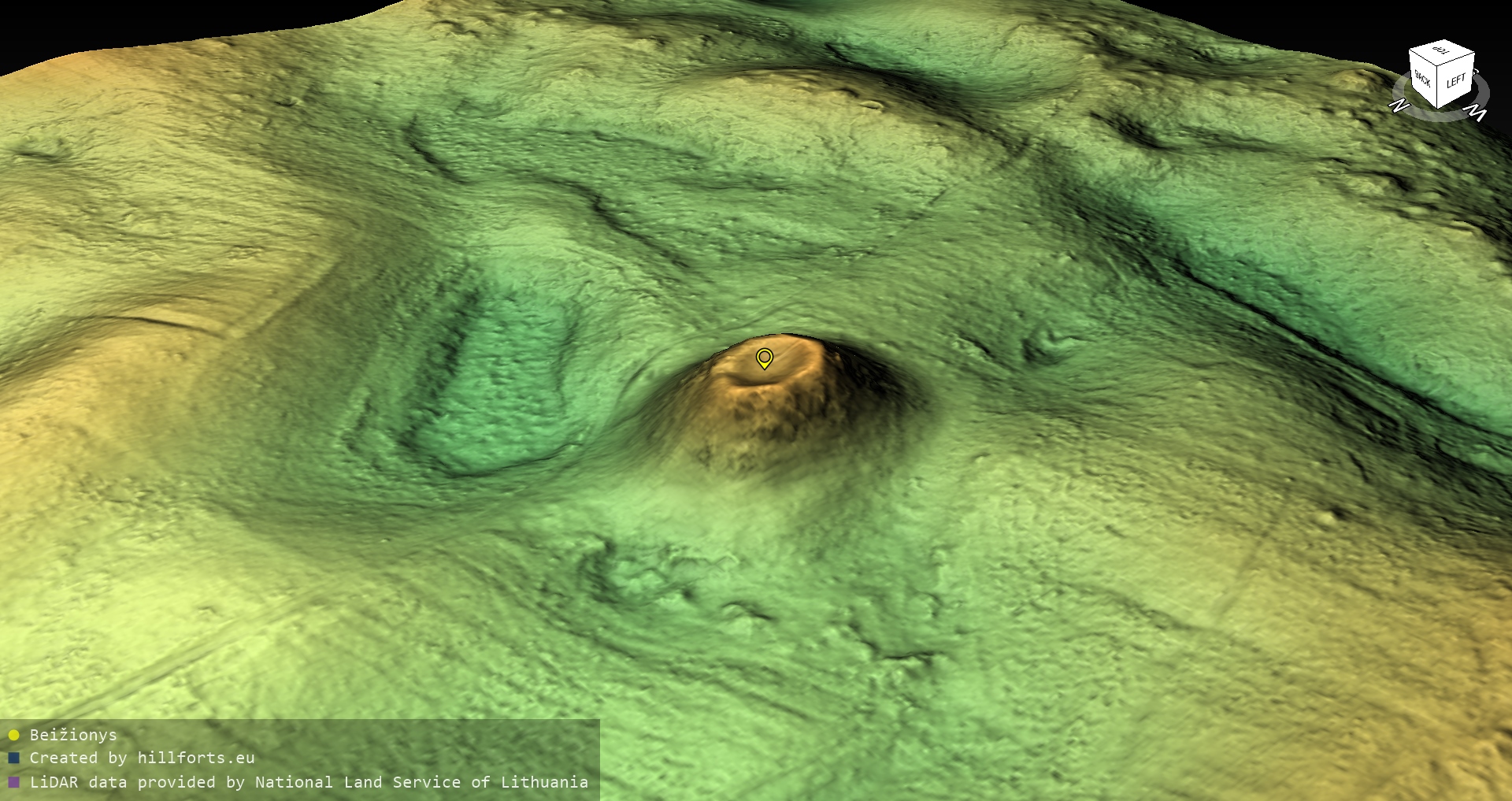 Latvijas pilskalnu 3D modeļi, kas veidoti no brīvpieejas LIDAR datiem LĢIA vietnē.