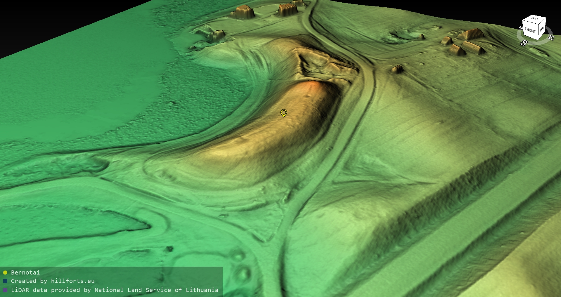 Latvijas pilskalnu 3D modeļi, kas veidoti no brīvpieejas LIDAR datiem LĢIA vietnē.