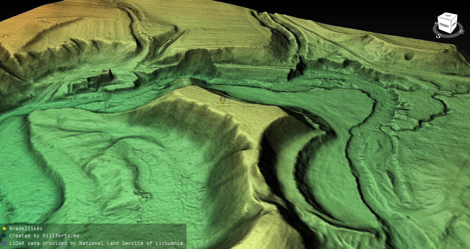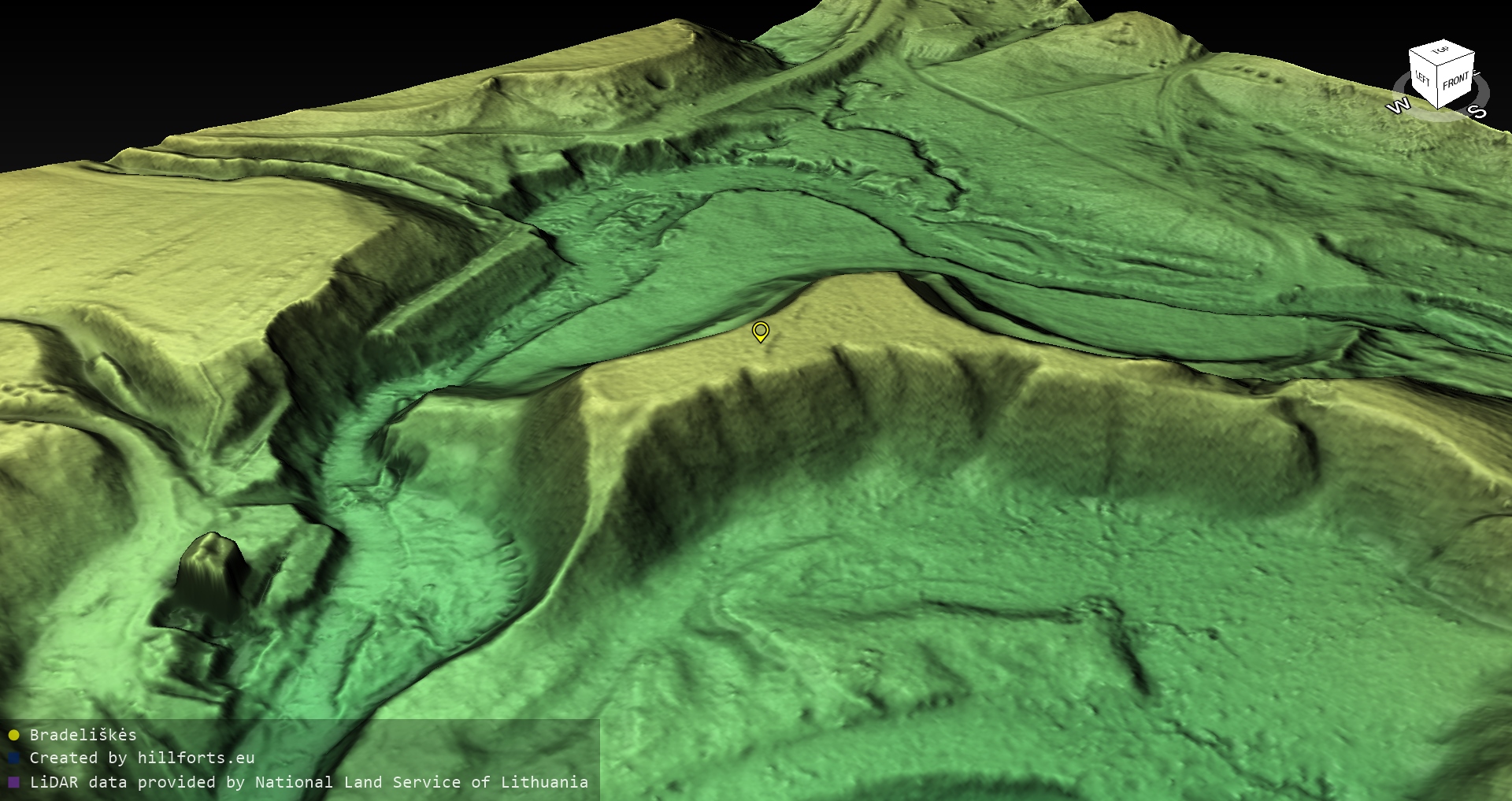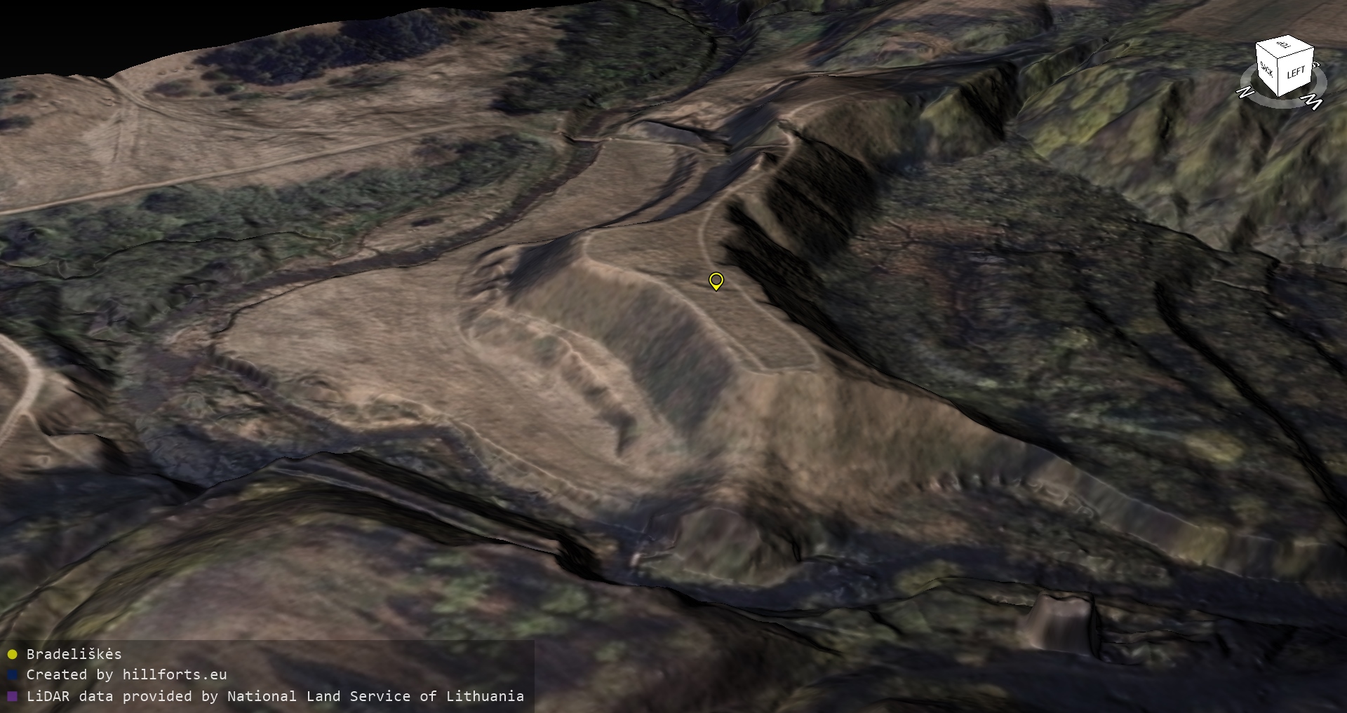 Latvijas pilskalnu 3D modeļi, kas veidoti no brīvpieejas LIDAR datiem LĢIA vietnē.