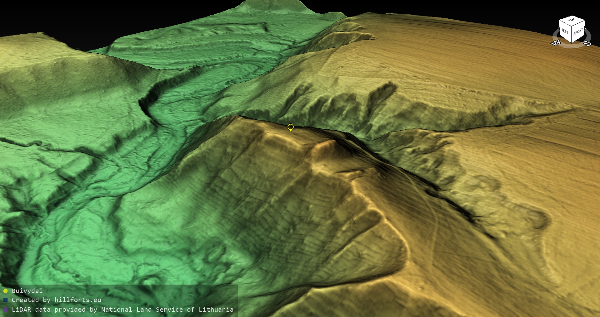 Latvijas pilskalnu 3D modeļi, kas veidoti no brīvpieejas LIDAR datiem LĢIA vietnē.