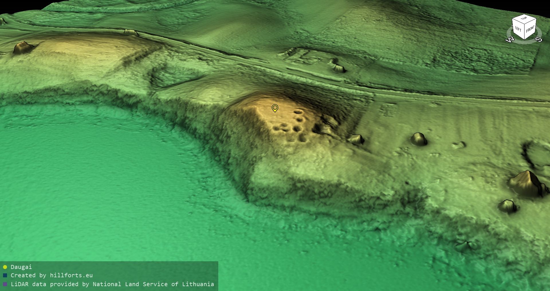 Latvijas pilskalnu 3D modeļi, kas veidoti no brīvpieejas LIDAR datiem LĢIA vietnē.