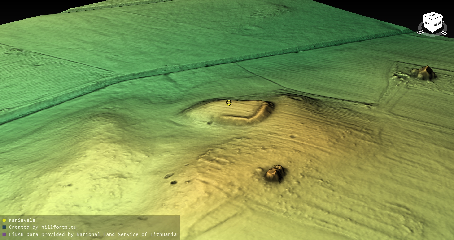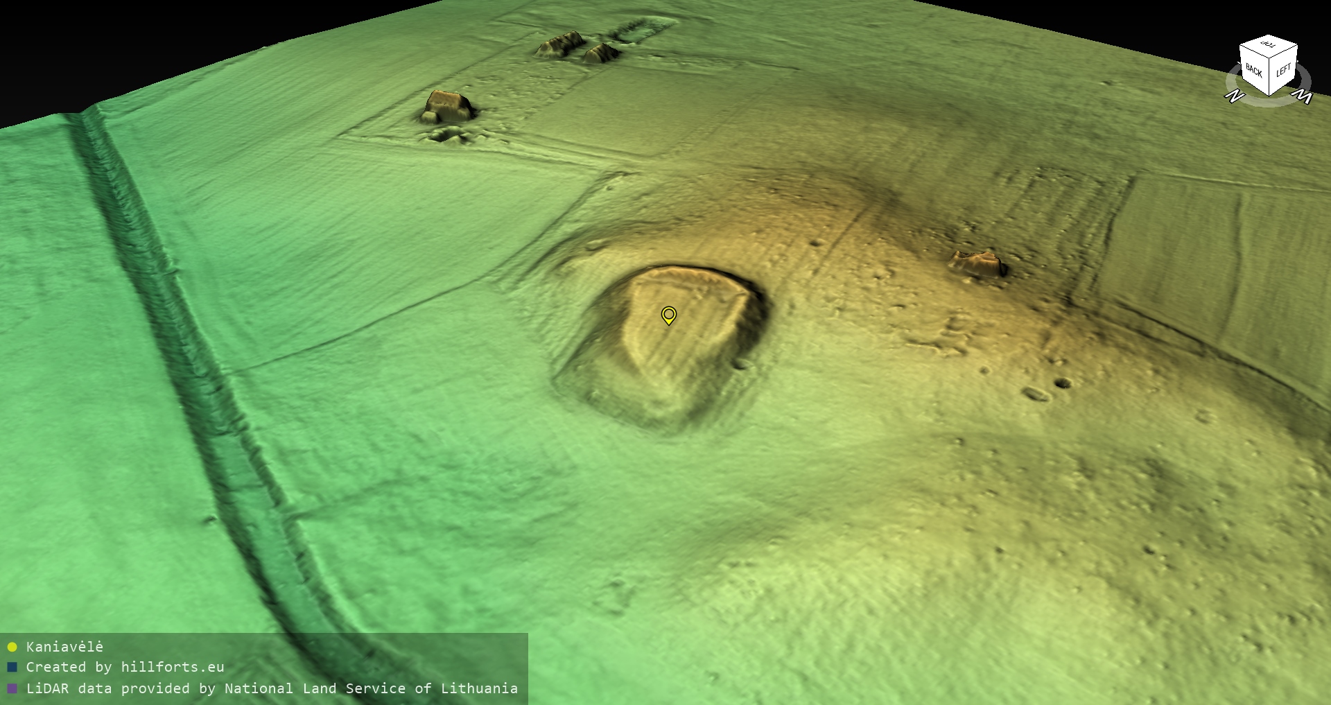 Latvijas pilskalnu 3D modeļi, kas veidoti no brīvpieejas LIDAR datiem LĢIA vietnē.