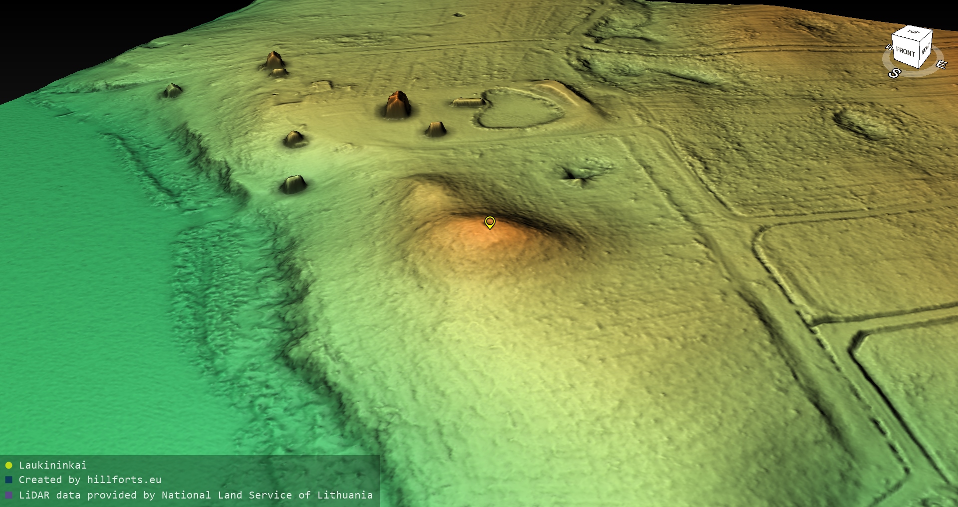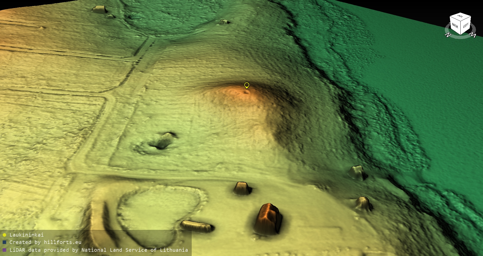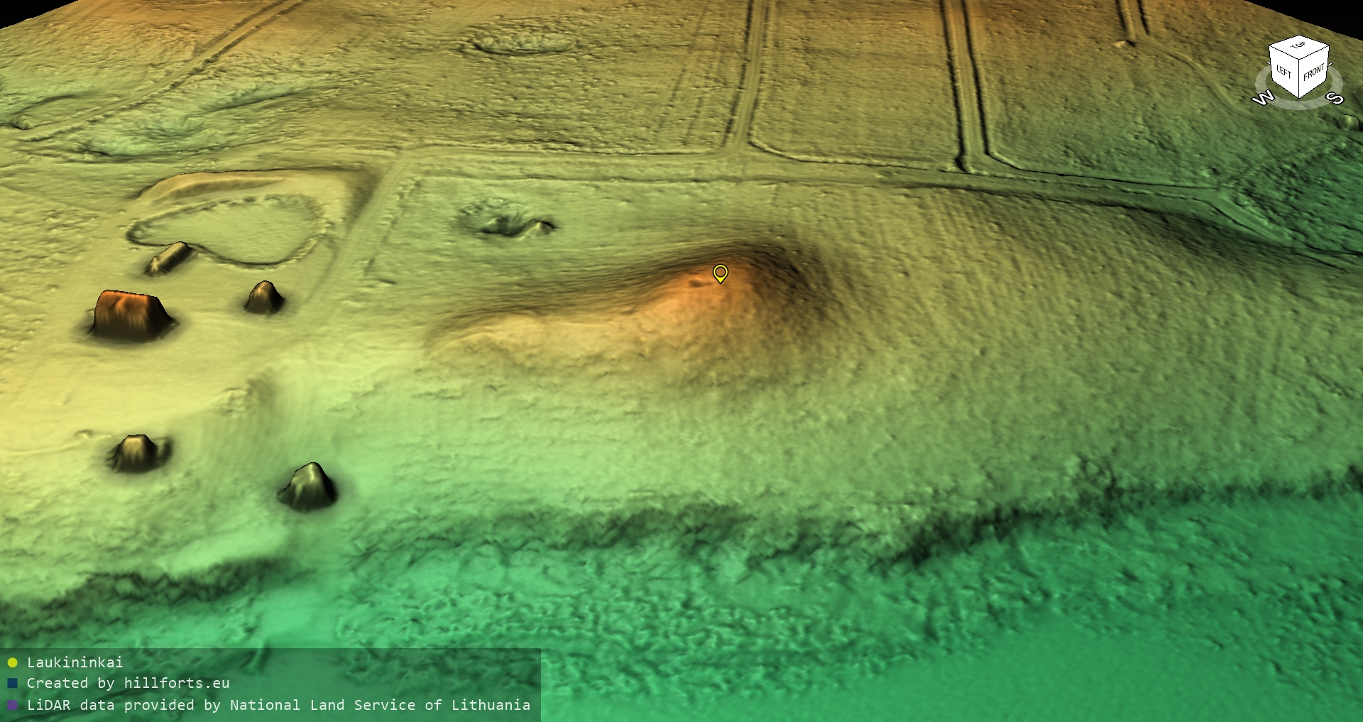 Latvijas pilskalnu 3D modeļi, kas veidoti no brīvpieejas LIDAR datiem LĢIA vietnē.