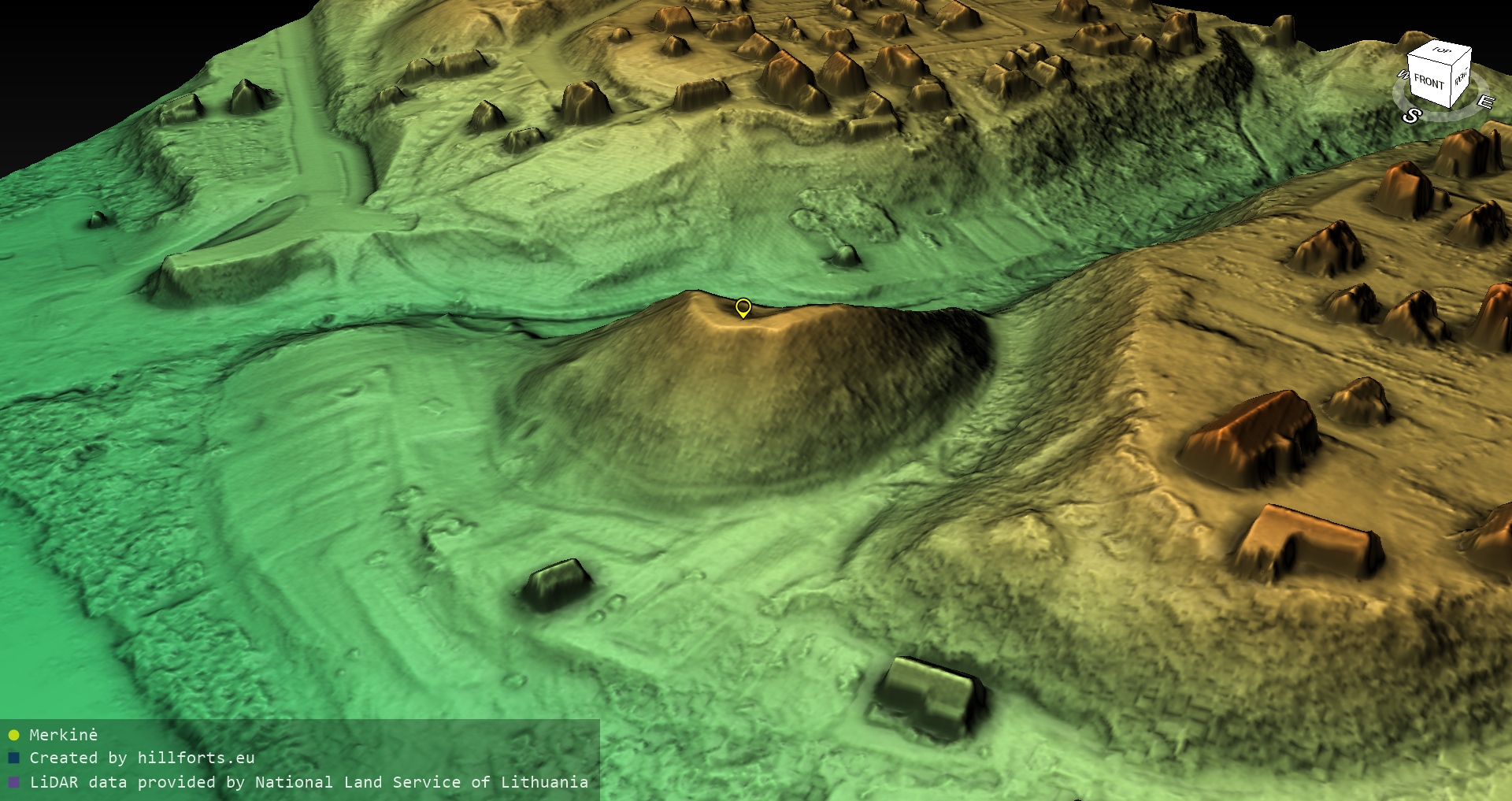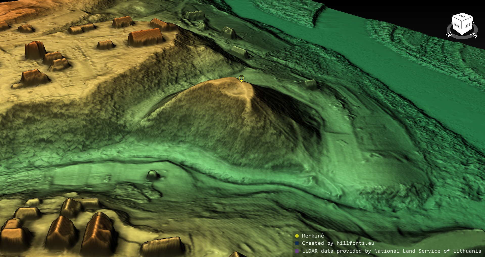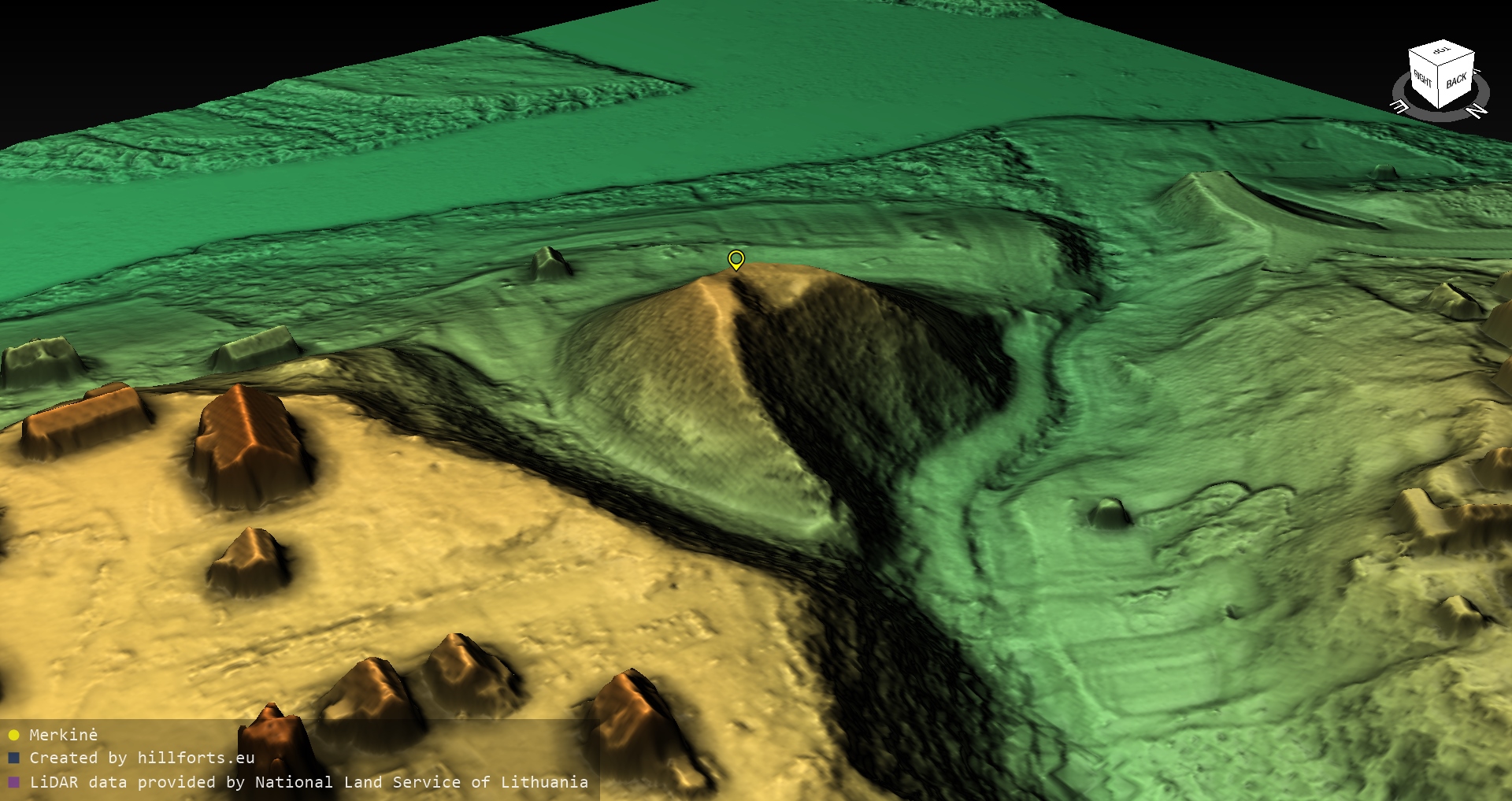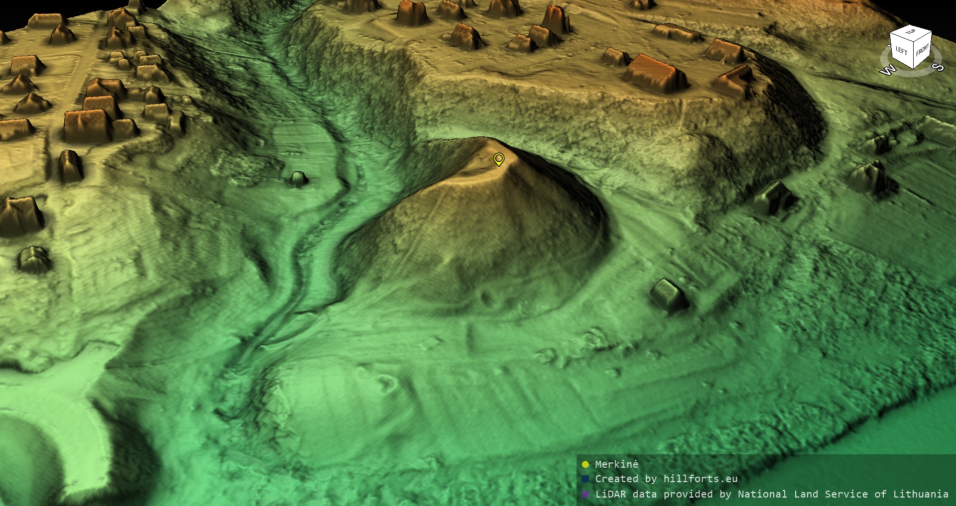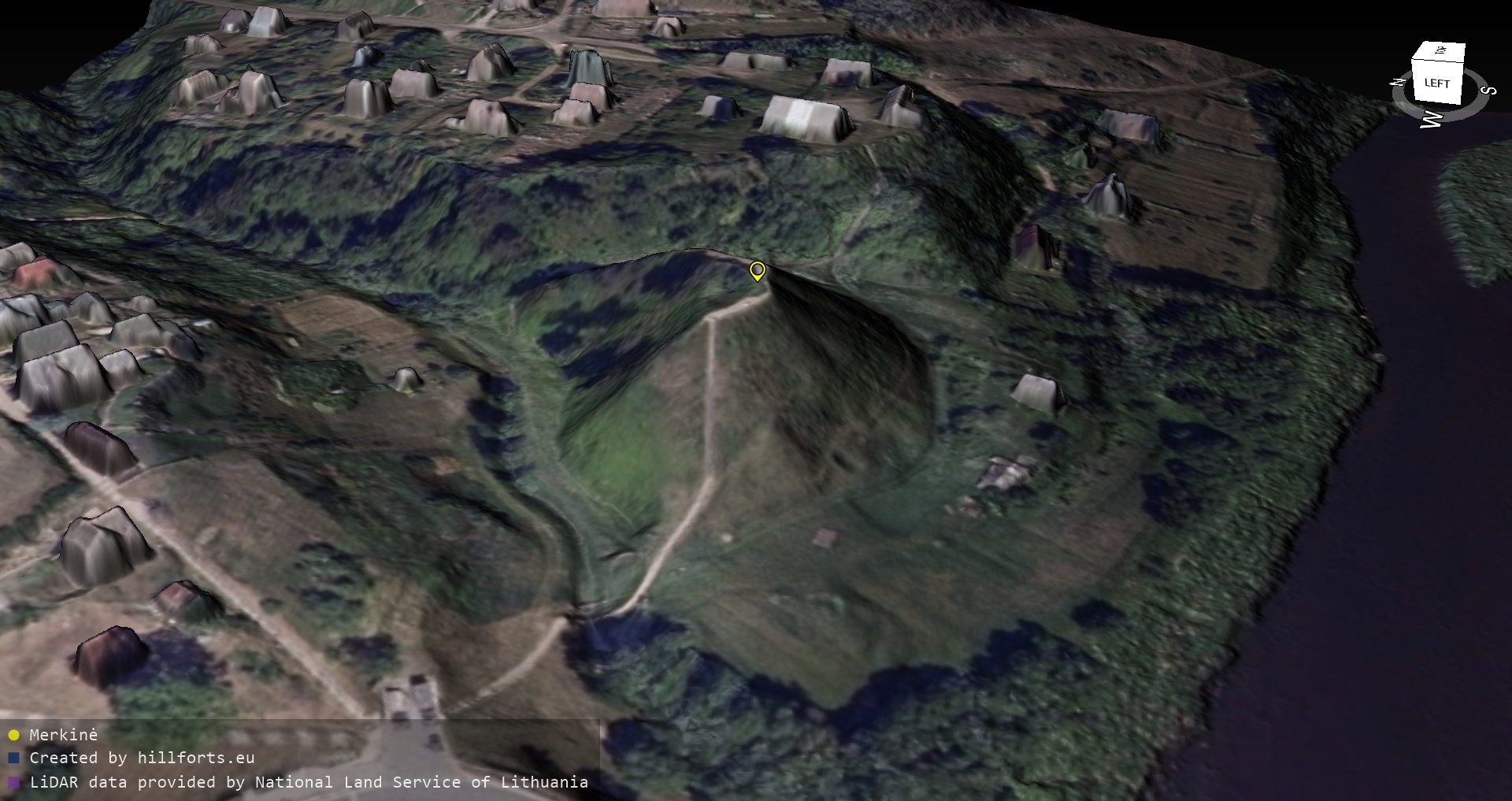Latvijas pilskalnu 3D modeļi, kas veidoti no brīvpieejas LIDAR datiem LĢIA vietnē.