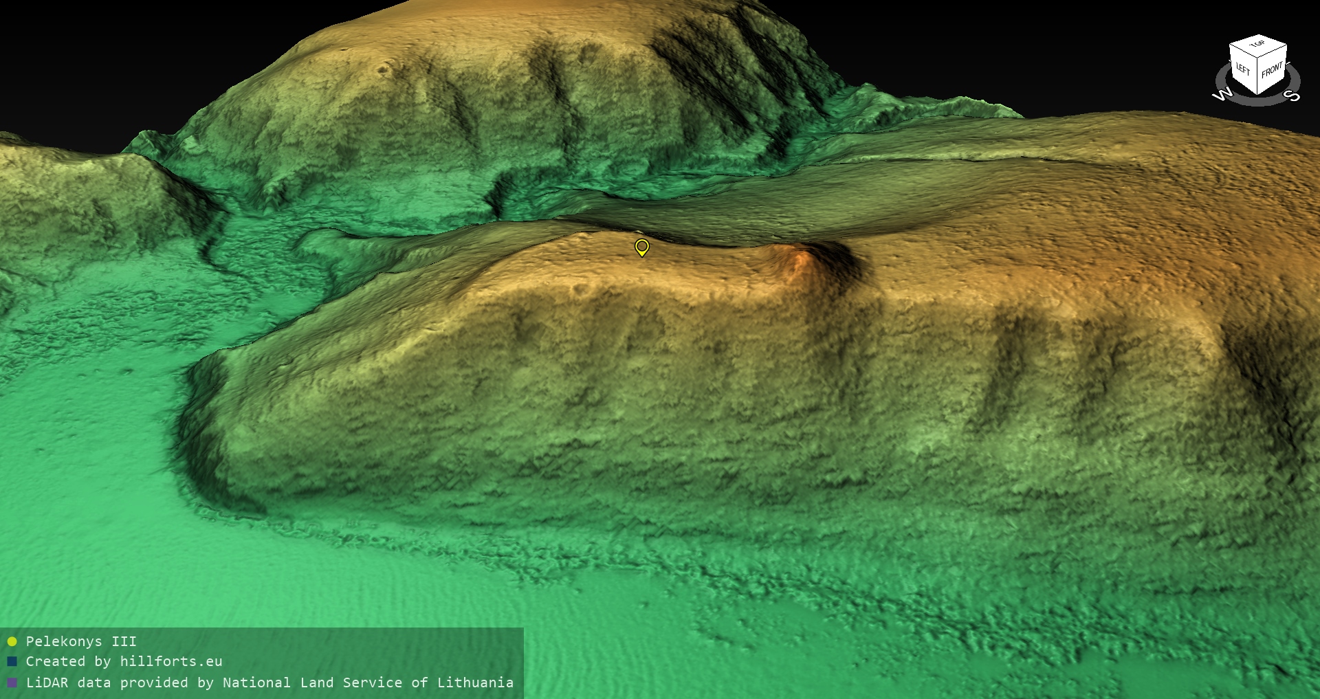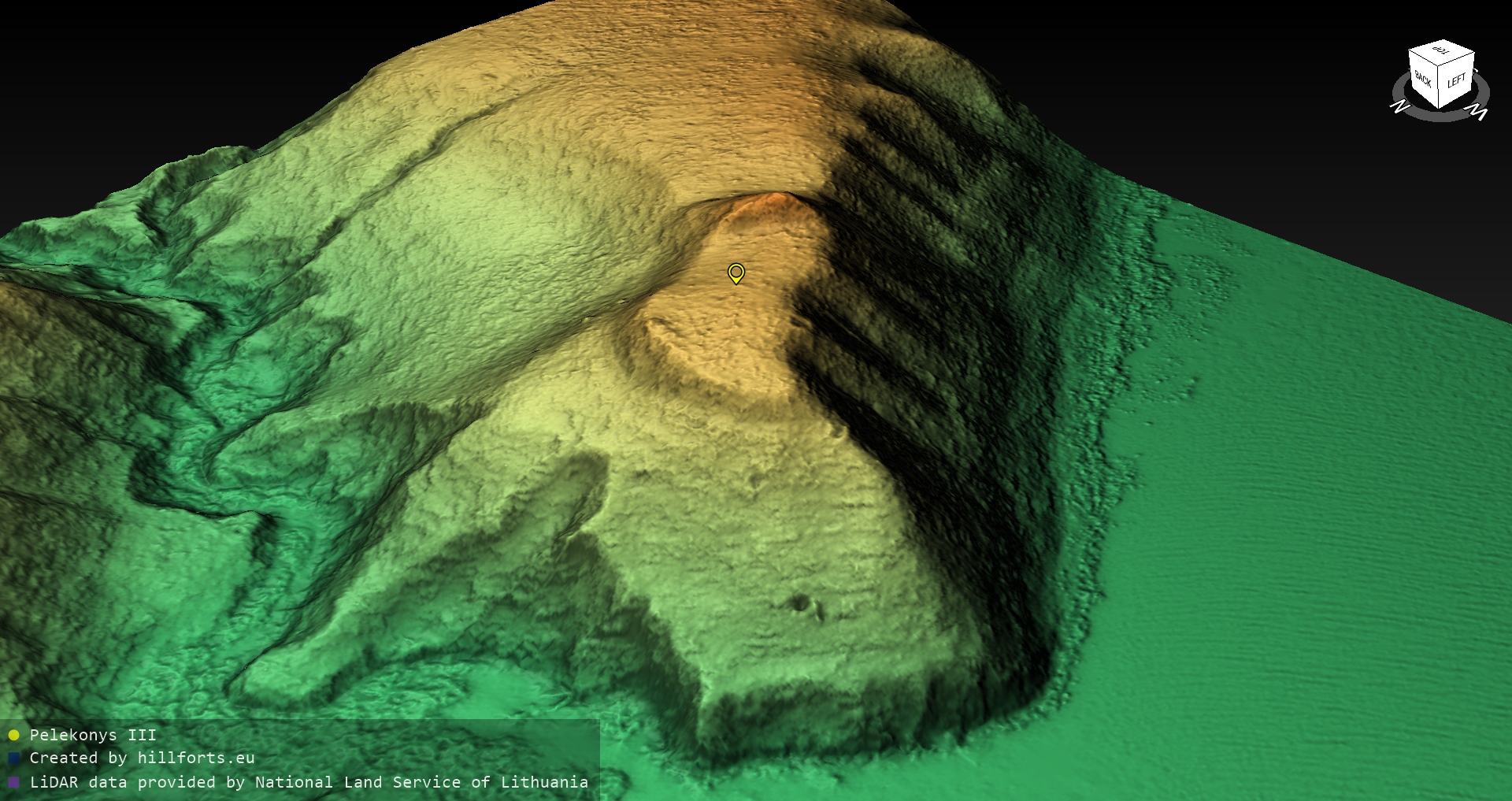 Latvijas pilskalnu 3D modeļi, kas veidoti no brīvpieejas LIDAR datiem LĢIA vietnē.