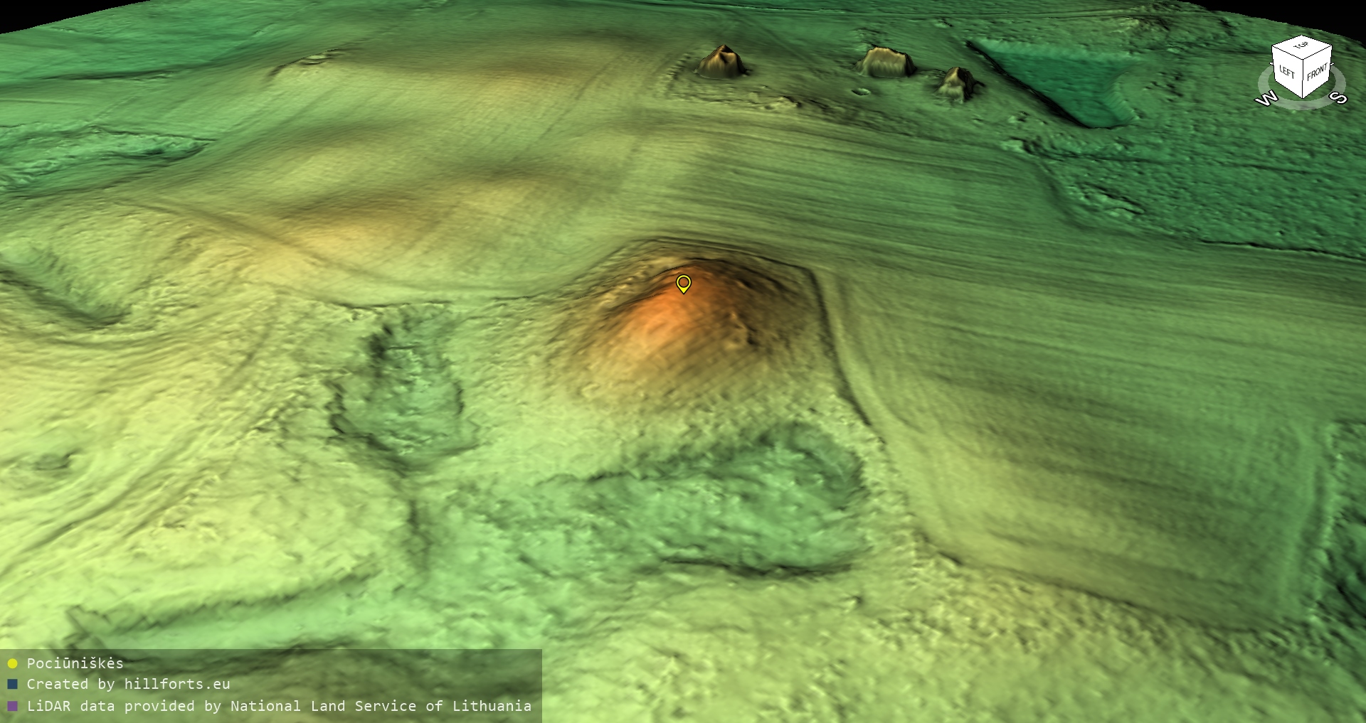 Latvijas pilskalnu 3D modeļi, kas veidoti no brīvpieejas LIDAR datiem LĢIA vietnē.