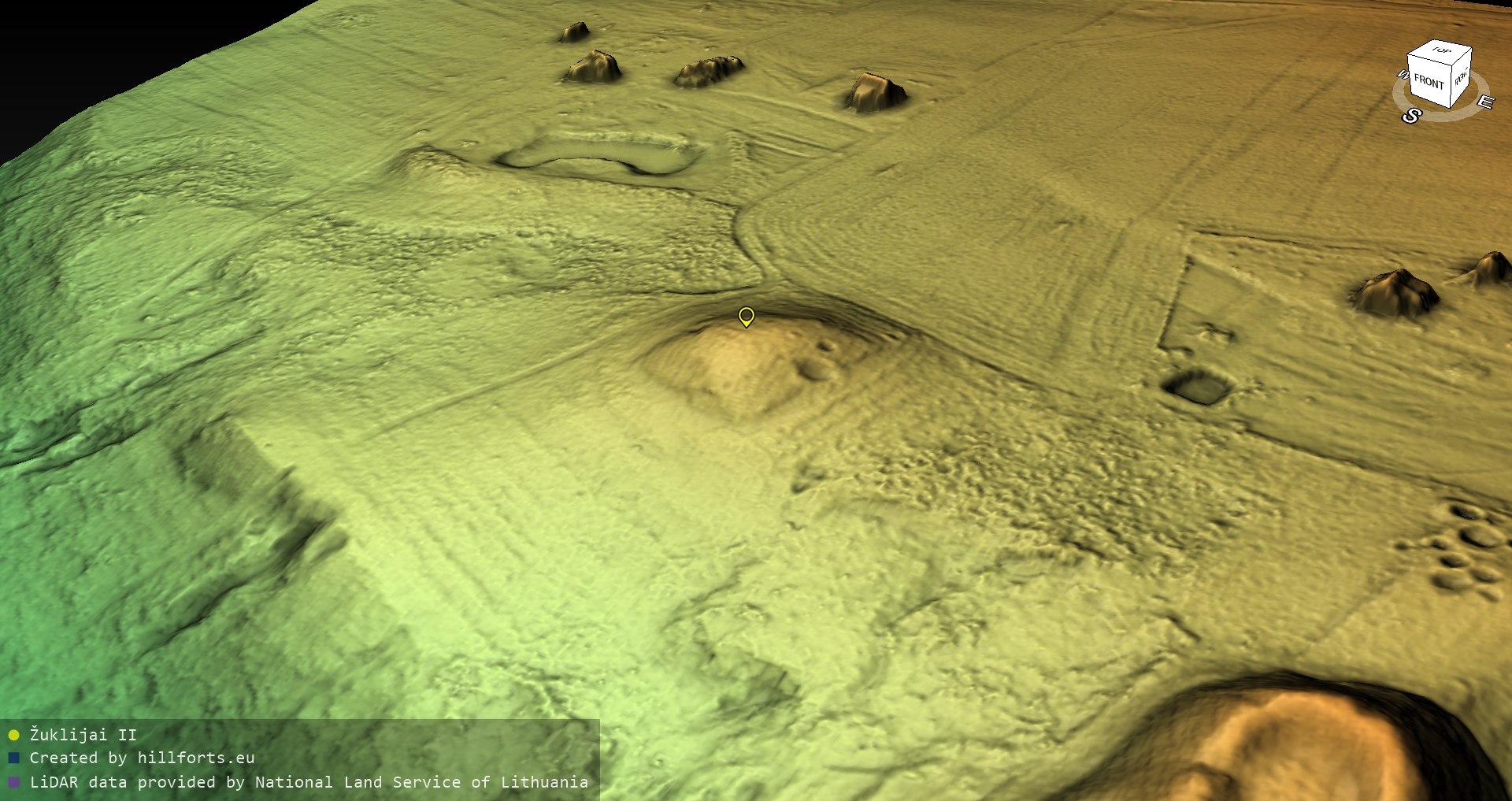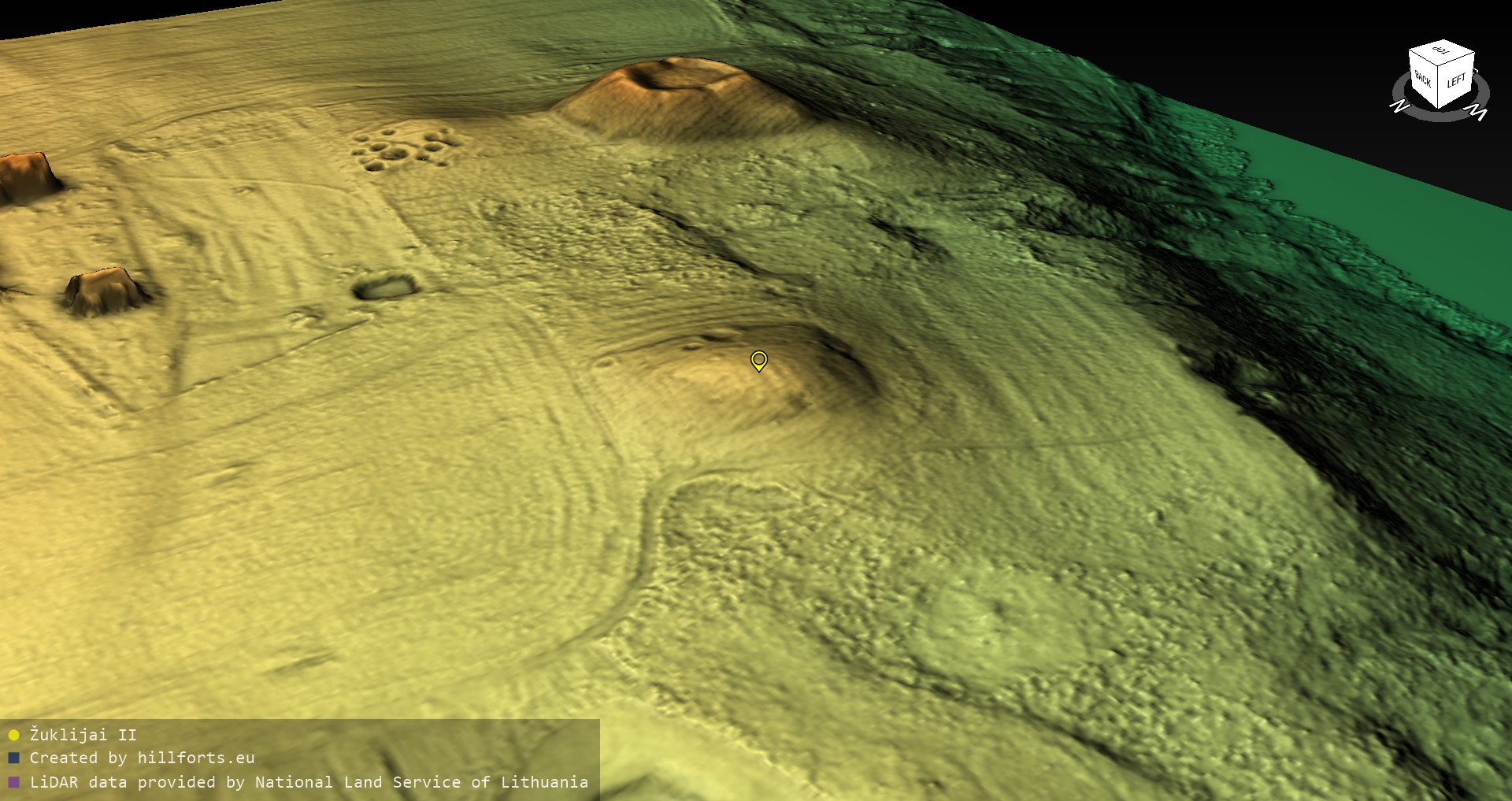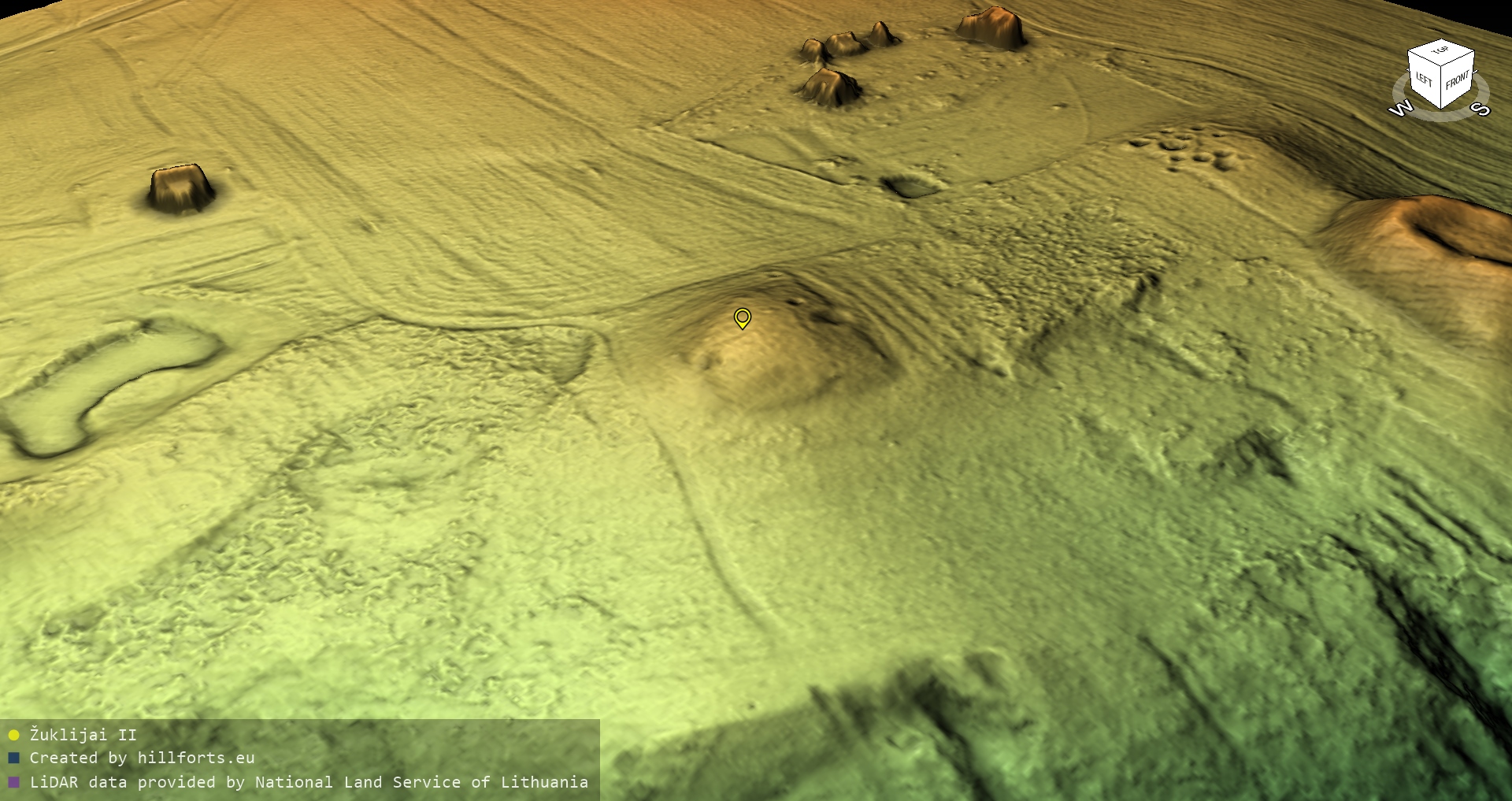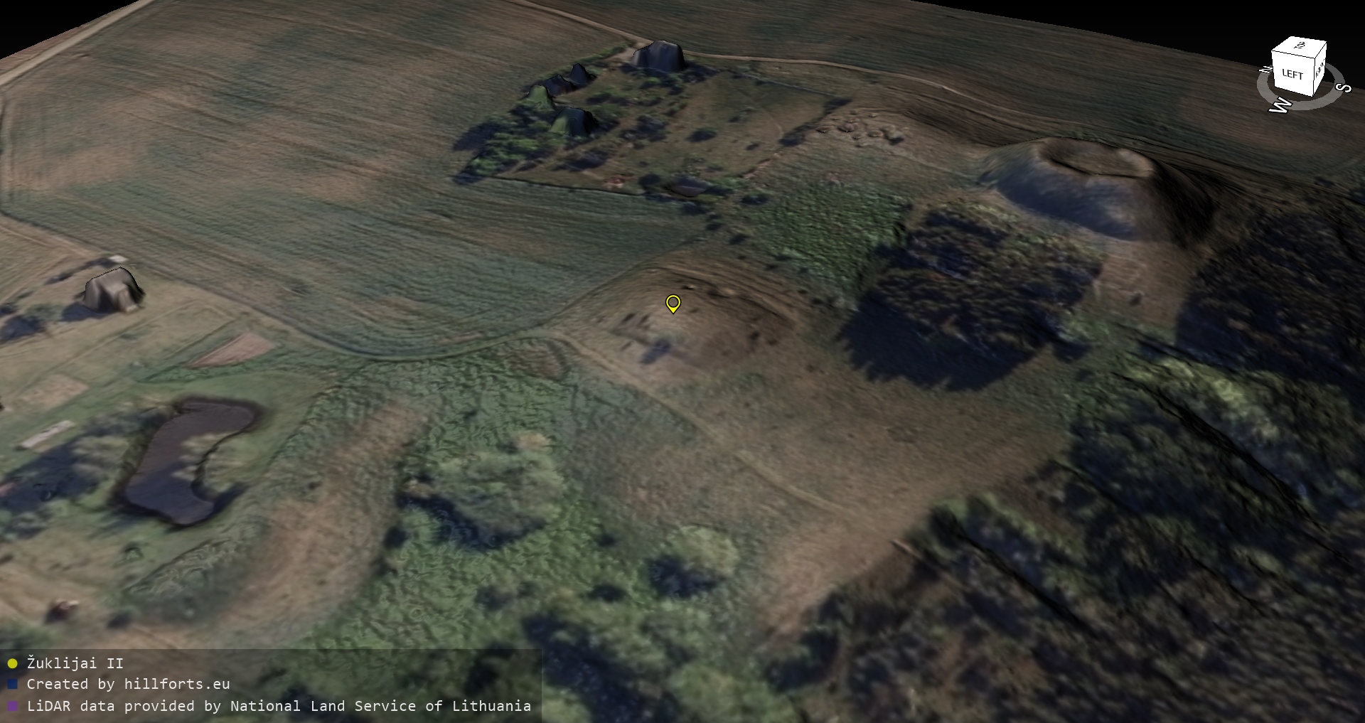 Latvijas pilskalnu 3D modeļi, kas veidoti no brīvpieejas LIDAR datiem LĢIA vietnē.