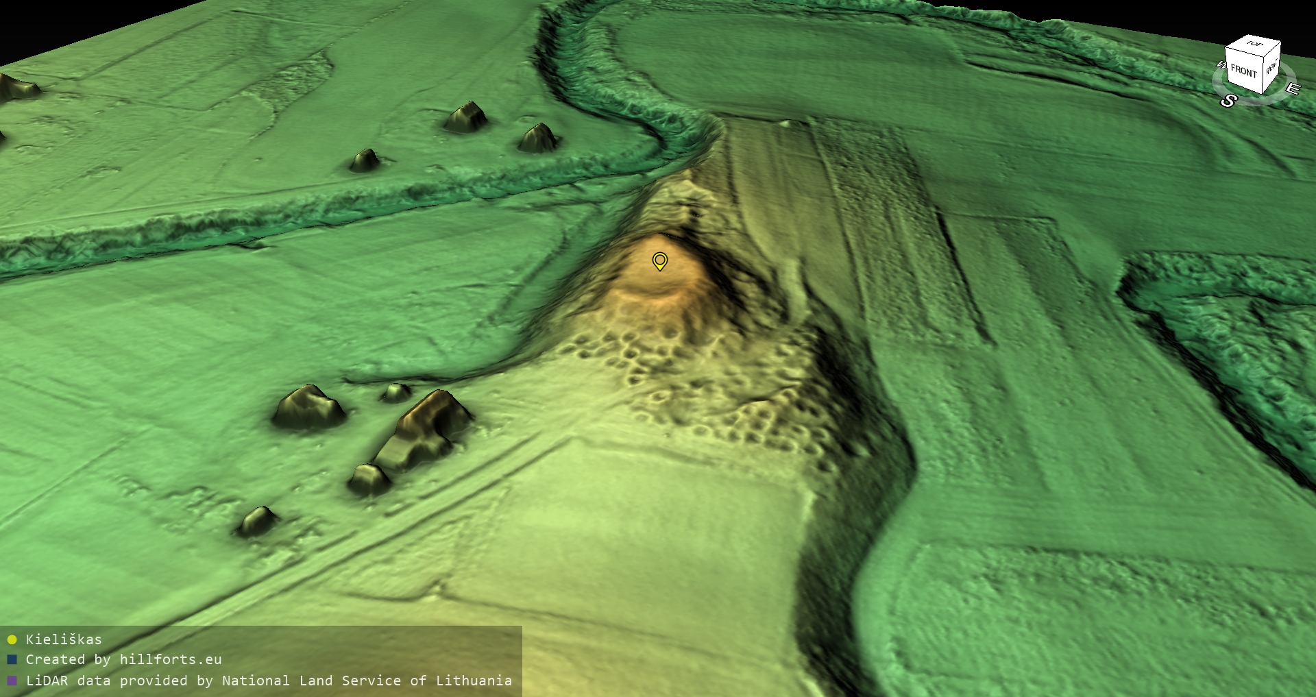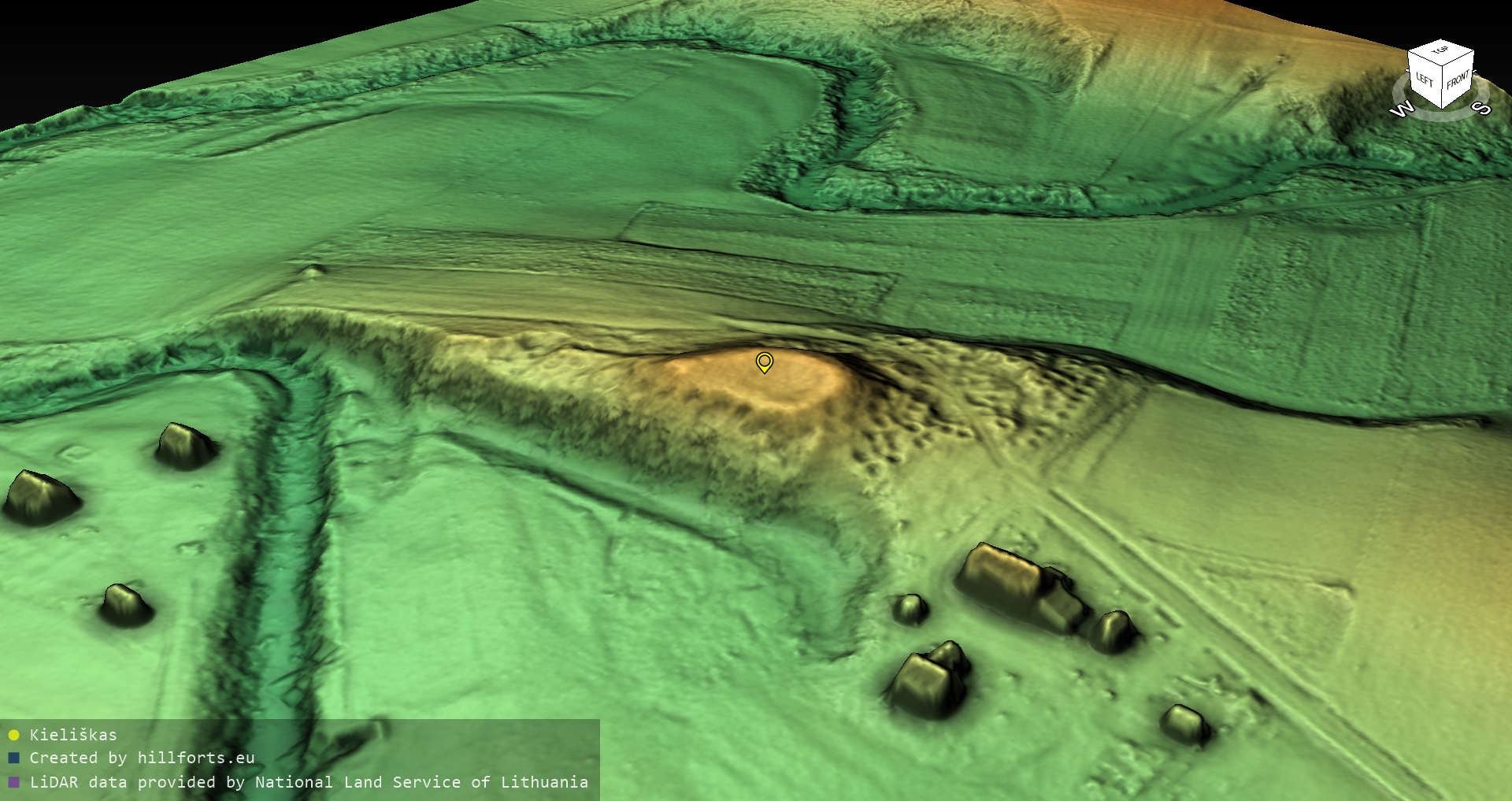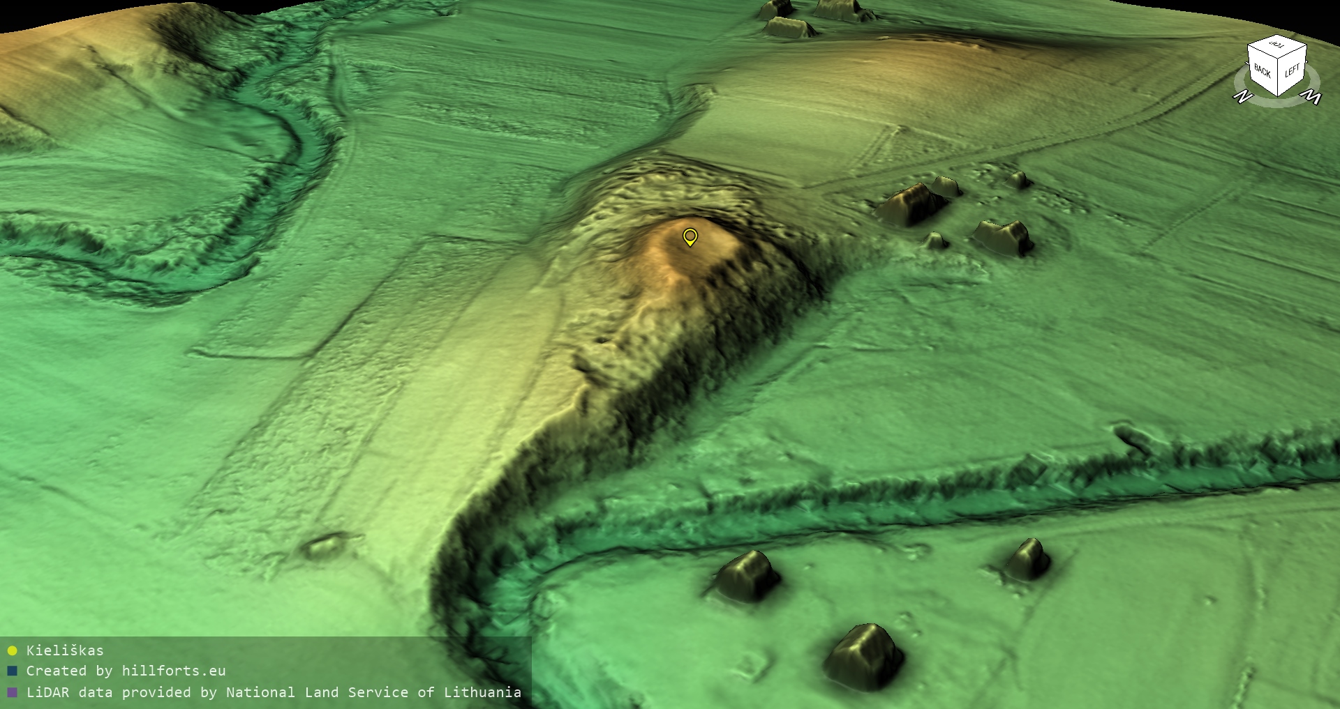 Latvijas pilskalnu 3D modeļi, kas veidoti no brīvpieejas LIDAR datiem LĢIA vietnē.