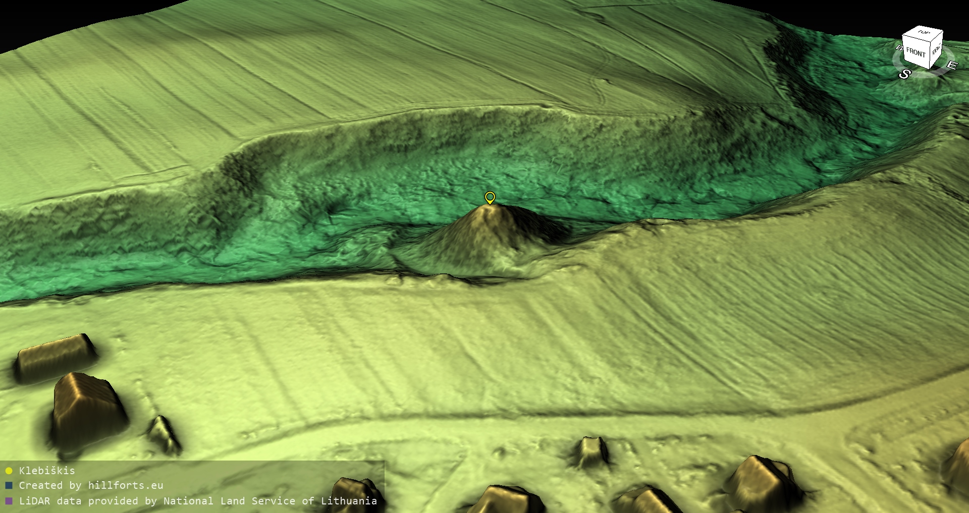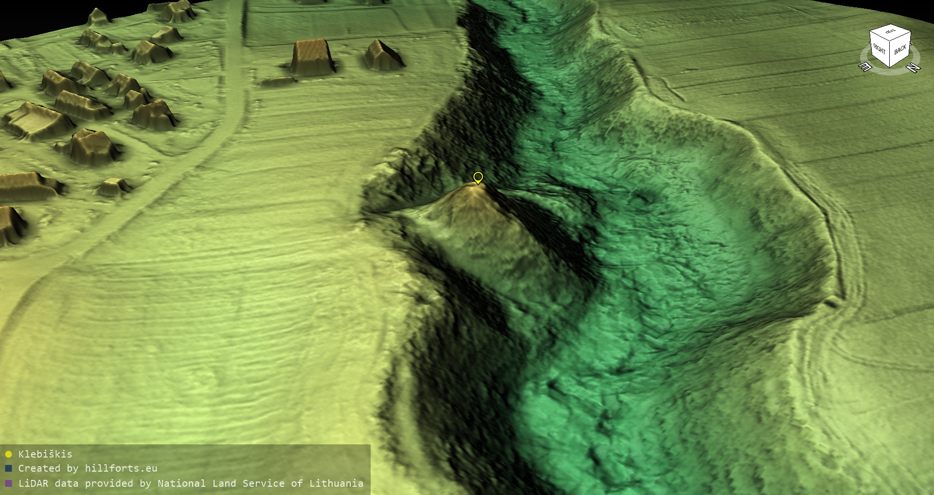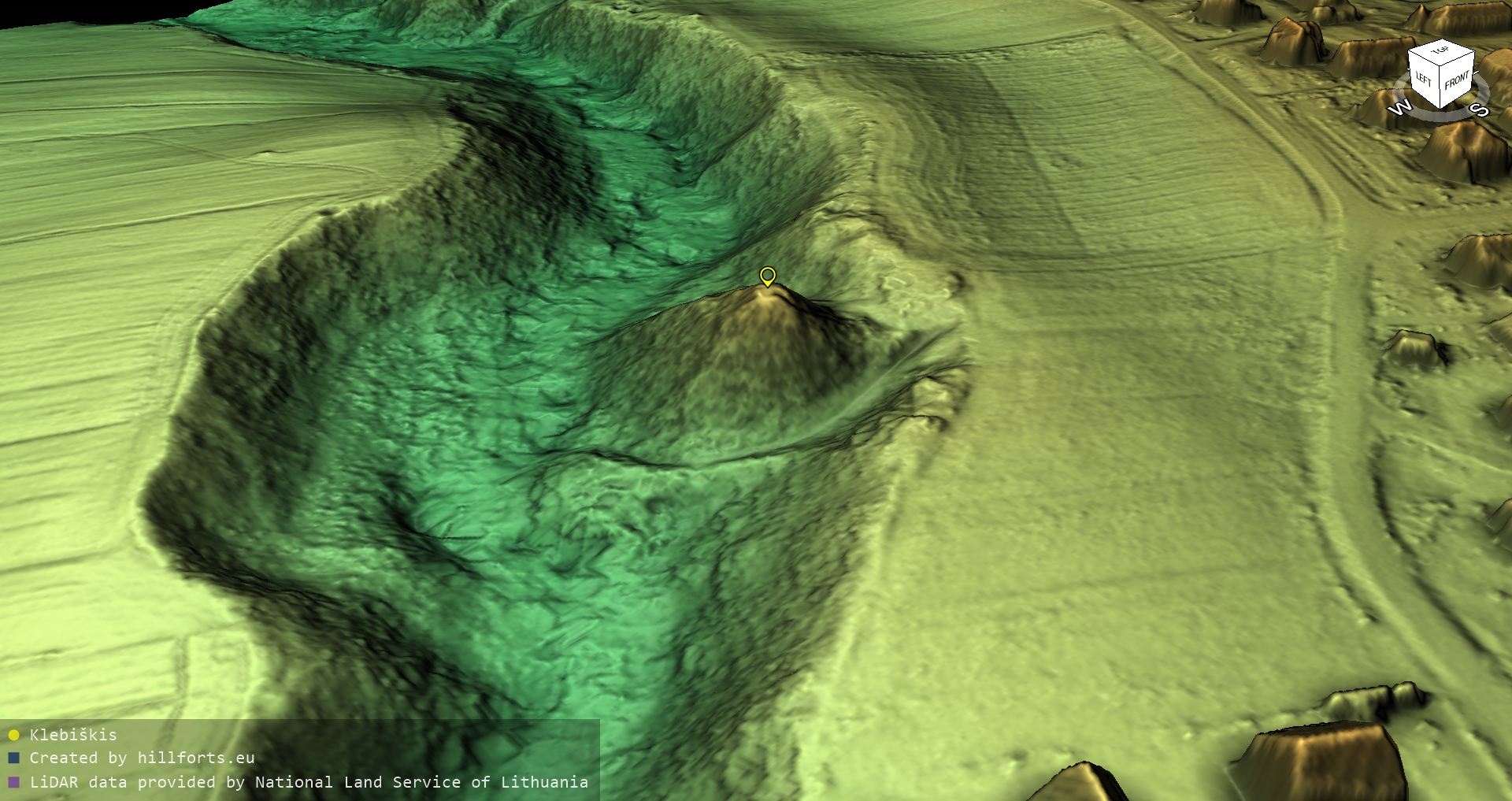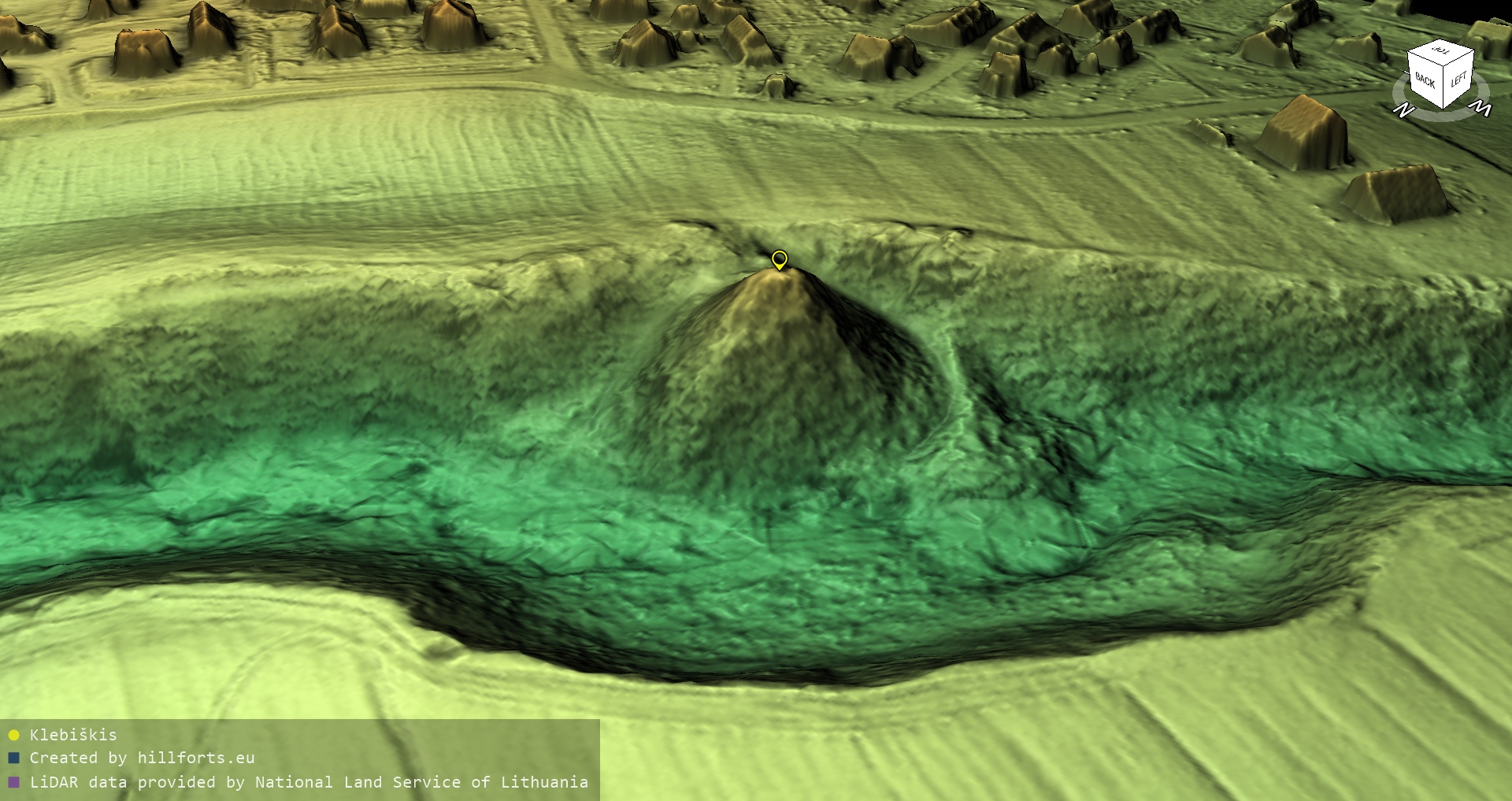 Latvijas pilskalnu 3D modeļi, kas veidoti no brīvpieejas LIDAR datiem LĢIA vietnē.