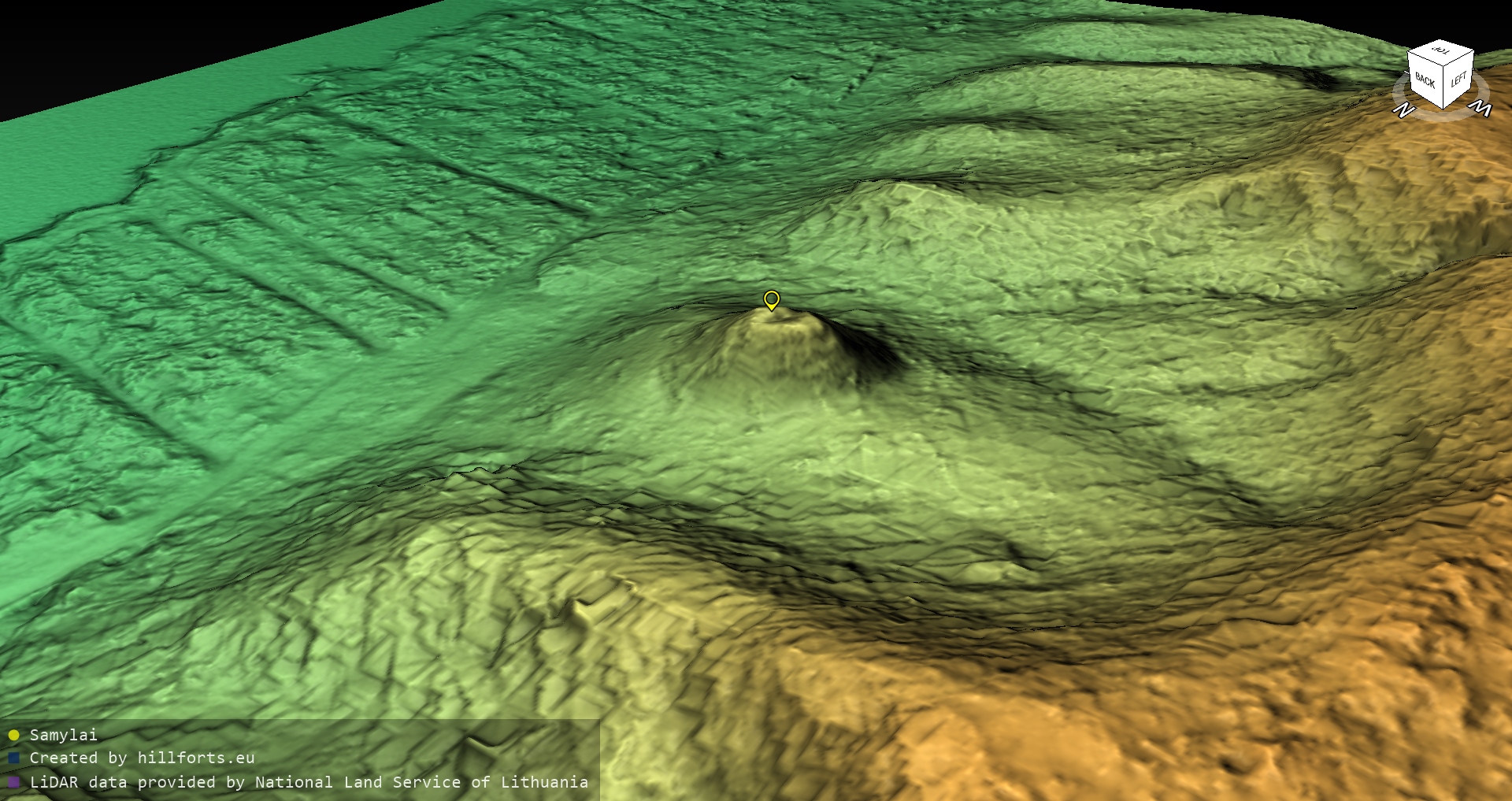 Latvijas pilskalnu 3D modeļi, kas veidoti no brīvpieejas LIDAR datiem LĢIA vietnē.