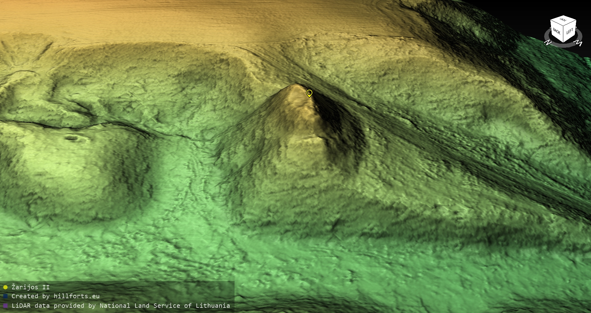 Latvijas pilskalnu 3D modeļi, kas veidoti no brīvpieejas LIDAR datiem LĢIA vietnē.